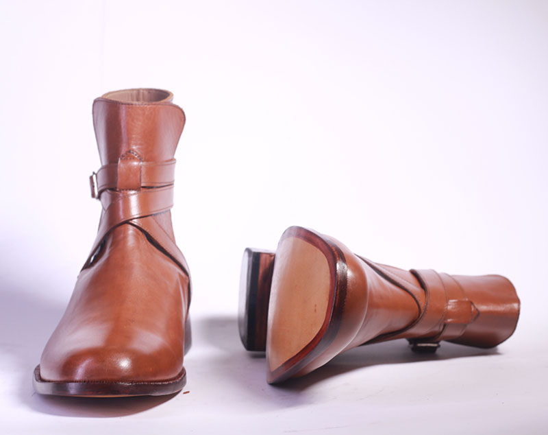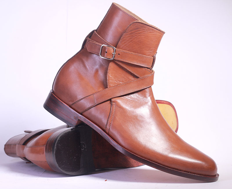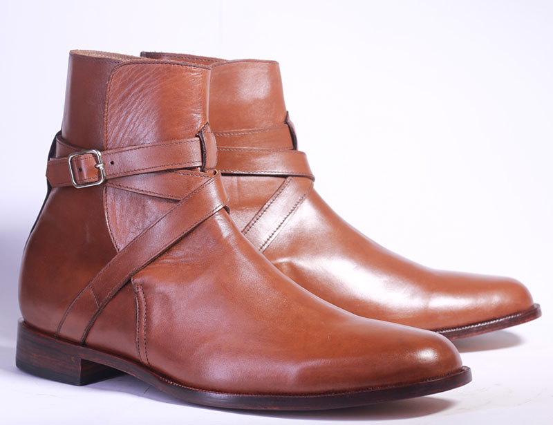 Handmade Men's Tan Color Leather Ankle High Jodhpurs