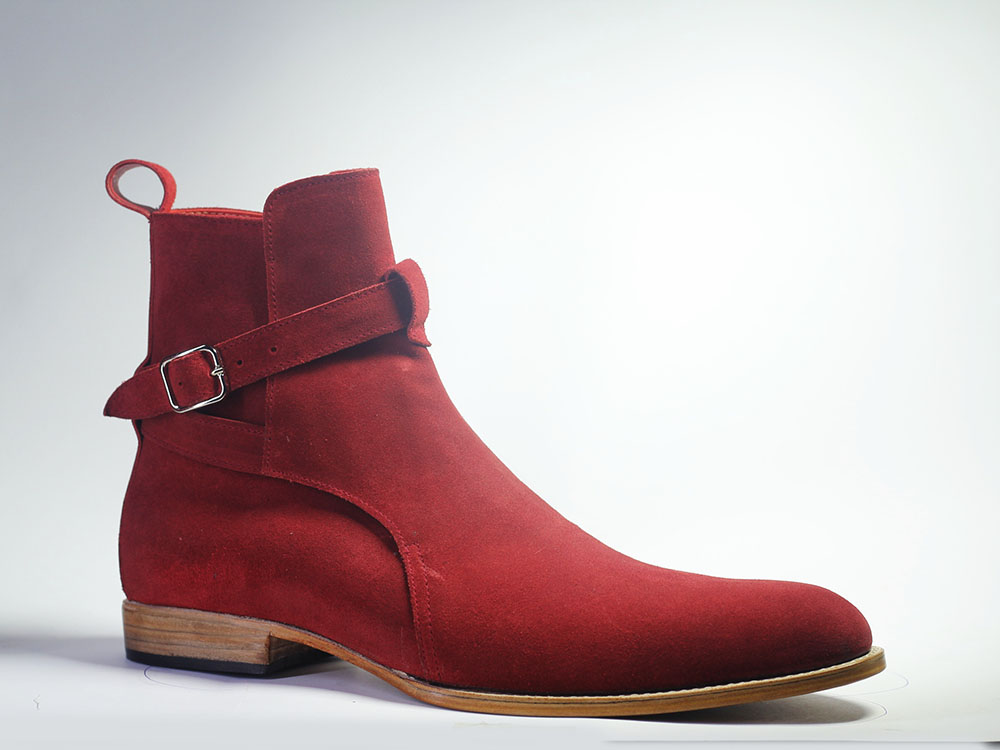 Handmade Men's Red Color Suede Leather Ankle High Jodhpurs