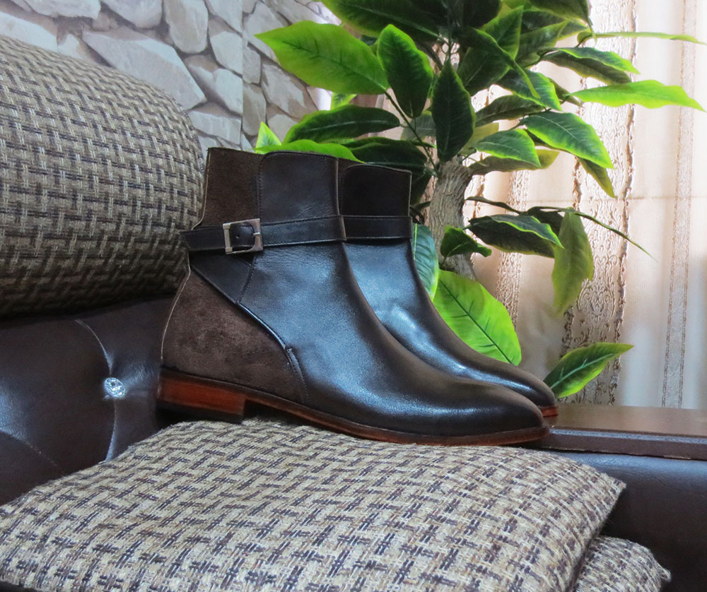 Men's Handmade Ankle High Burgundy Jodhpurs Monk Strep Leather Suede Dress Boots