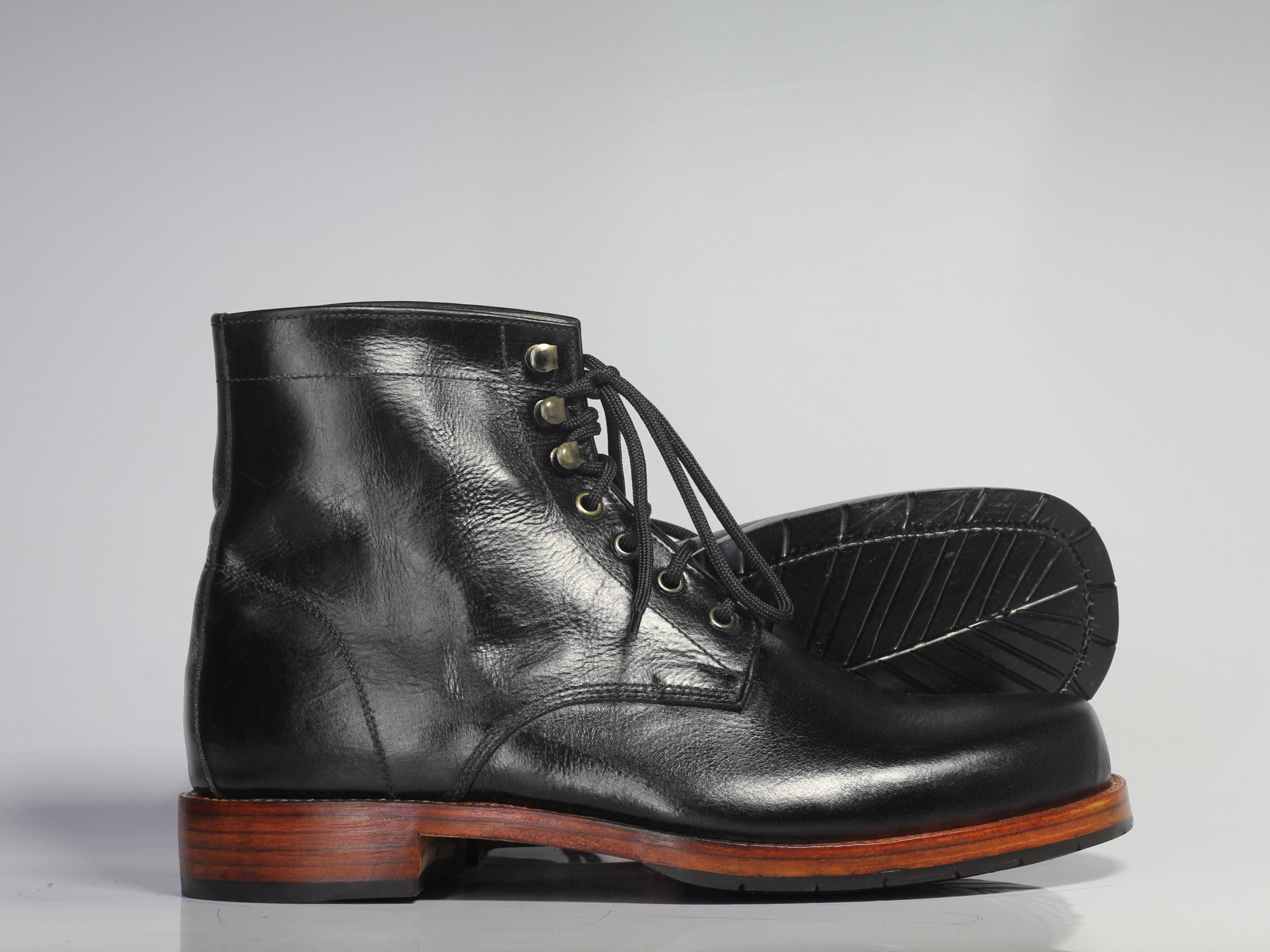 Handmade Men's Black Color Leather Ankle High Casual Lace Up Boots