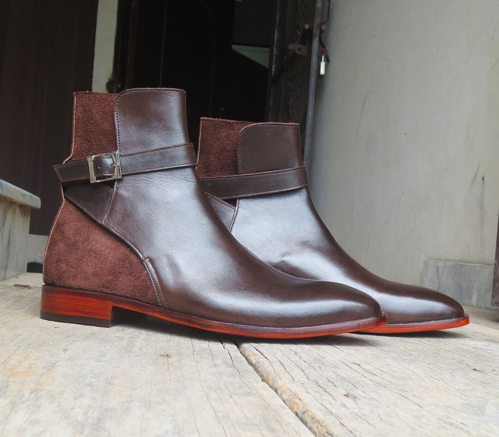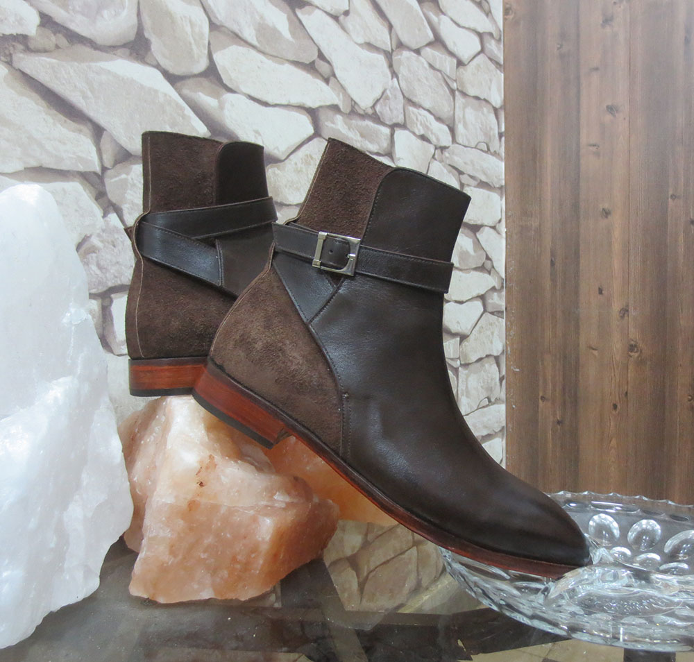 Handmade Men's Brown Color Leather & Suede Jodhpurs Ankle High Boots