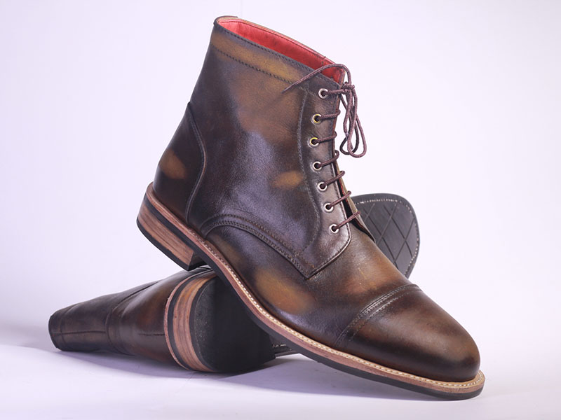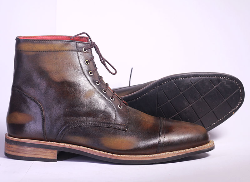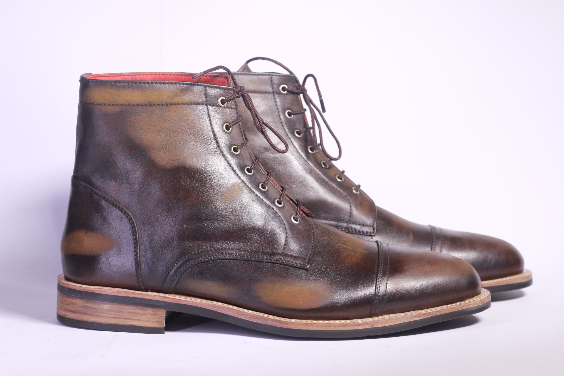 Handmade Men's Chocolate Brown Cap Toe Ankle High Leather Lace Up Boots
