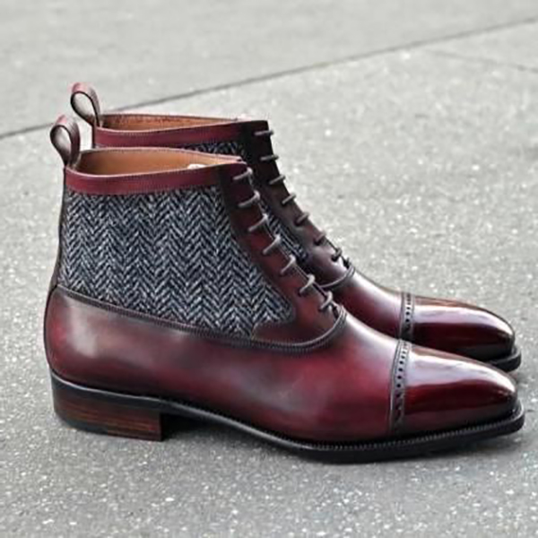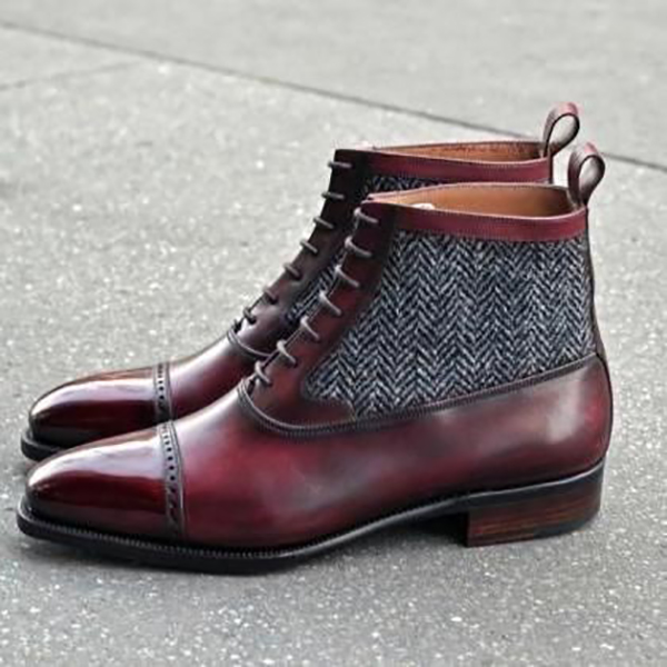 Handmade Men's Burgundy Cap Toe Ankle High Leather Suede Lace Up Boots