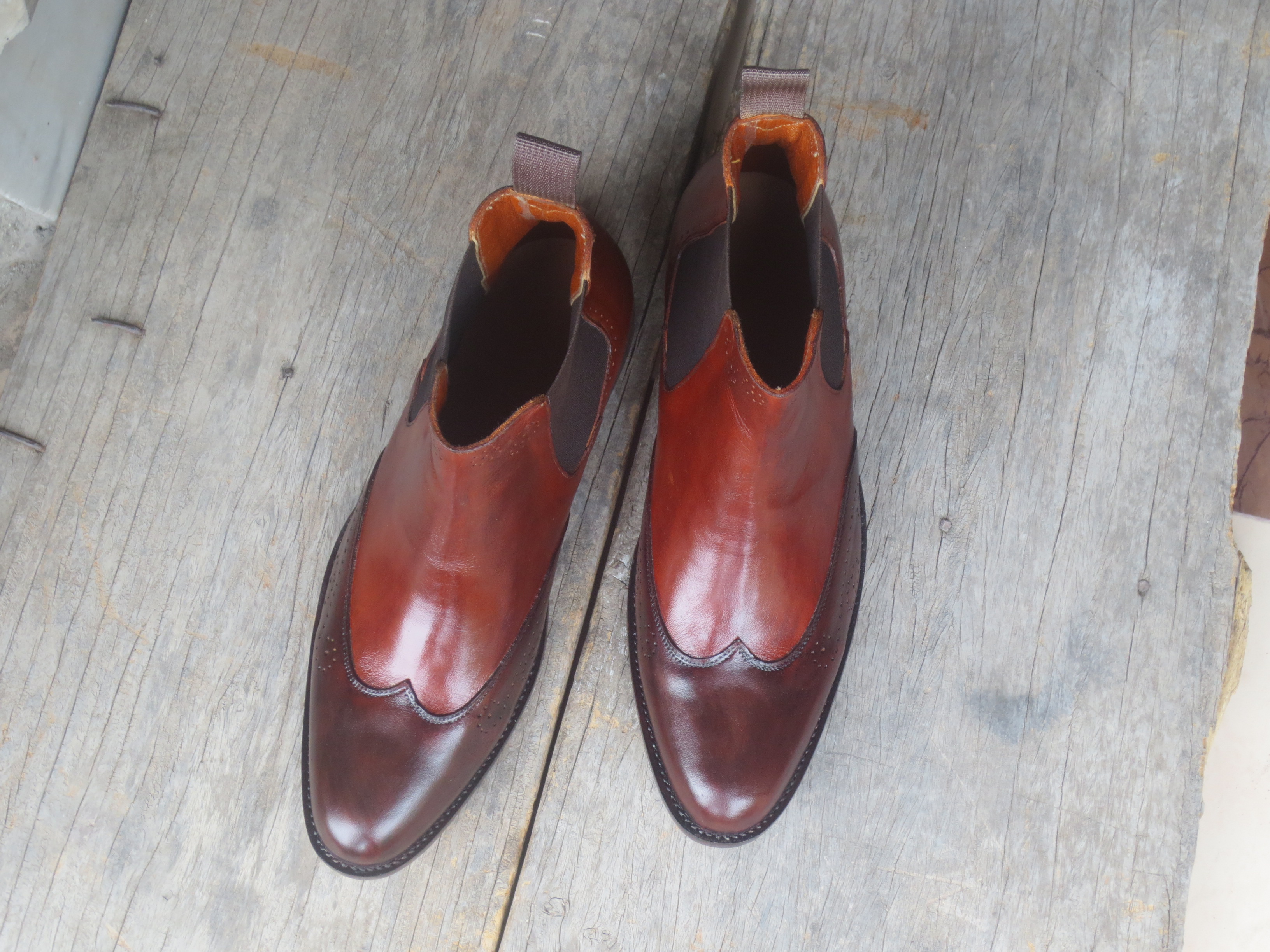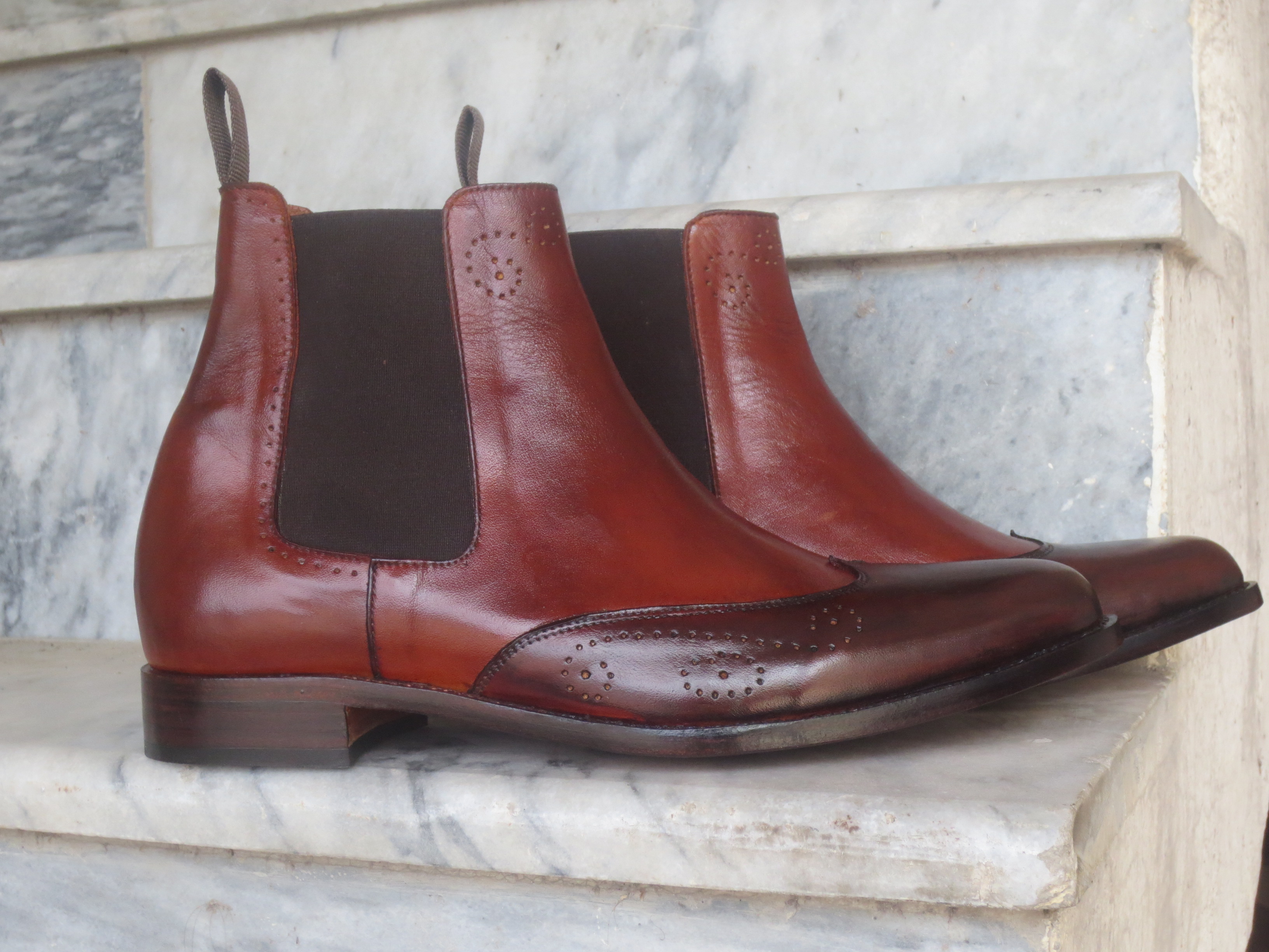 Handmade Men's Burgundy Wing Tip Brogue Leather Ankle High Chelsea Dress Boots