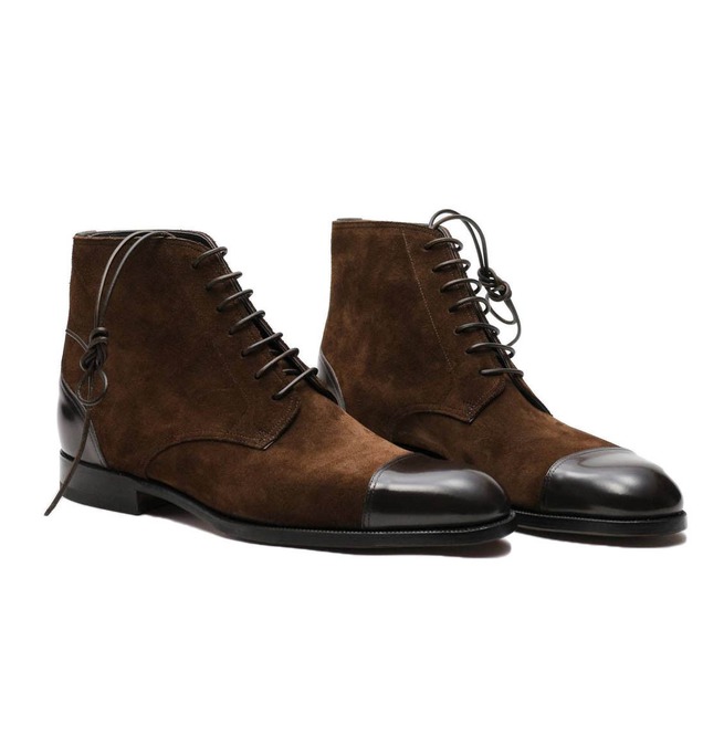 Handmade Men's Brown Cap Toe Leather Suede Ankle High Lace Up Boots