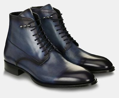Handmade Men's Black And Blue Ankle High Leather Lace Up Boots