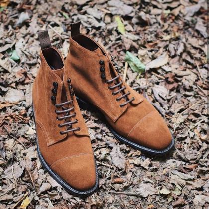 Handmade Men's Tan Suede Cap Toe Ankle High Lace Up Boots