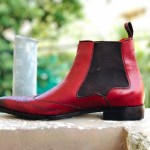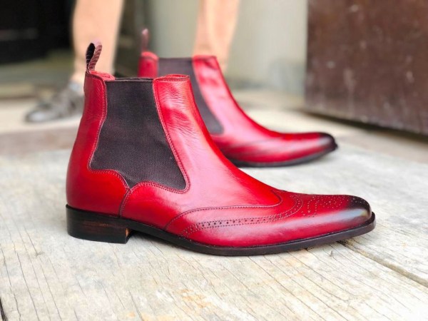 Handmade Men's Red Wing Tip Brogue Leather Ankle High Chelsea Dress Boots