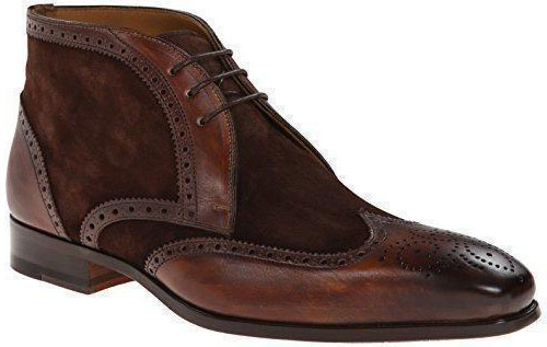 Handmade Men's Brown Leather Suede Wing Tip Brogue Ankle High Boots