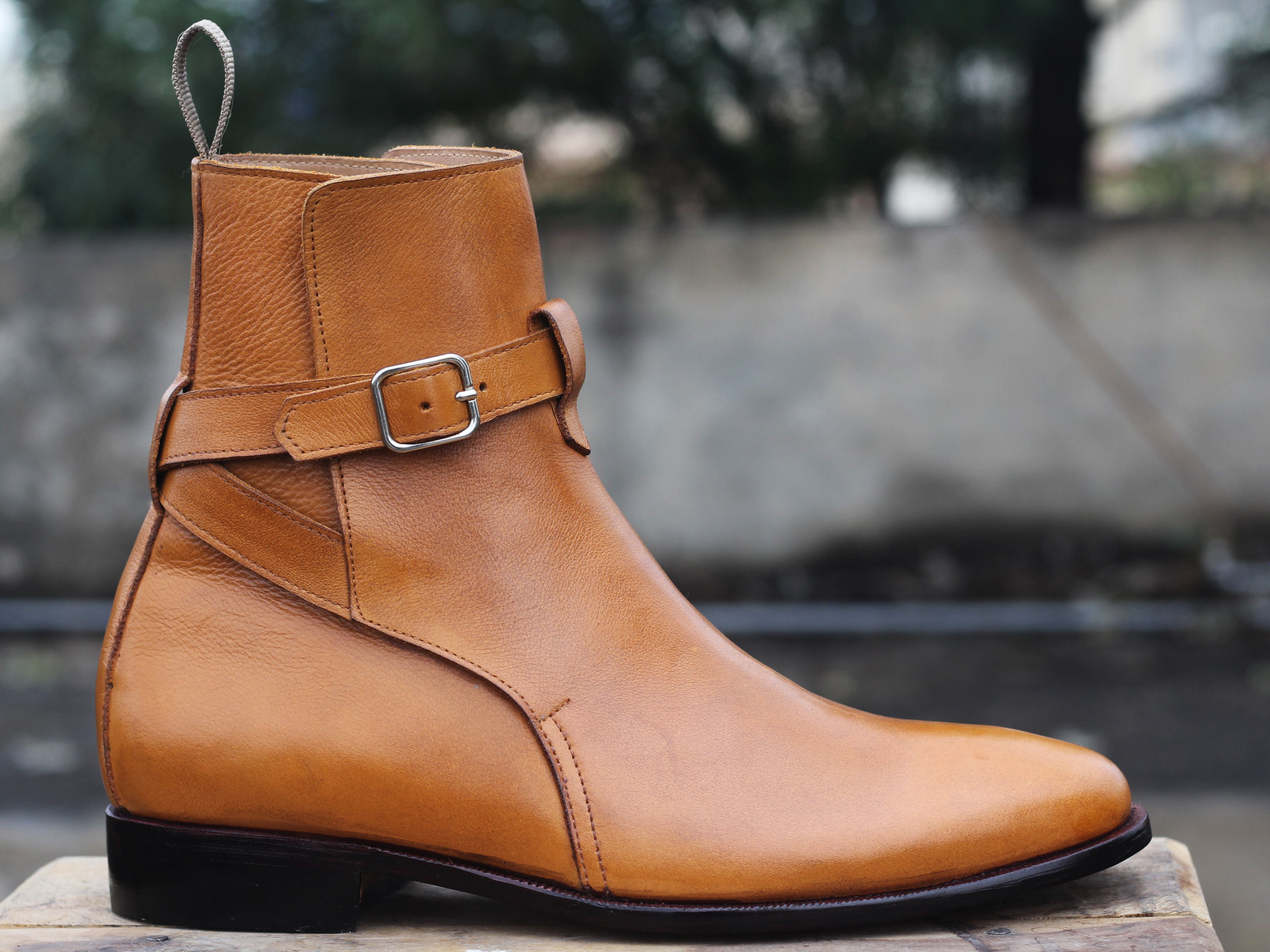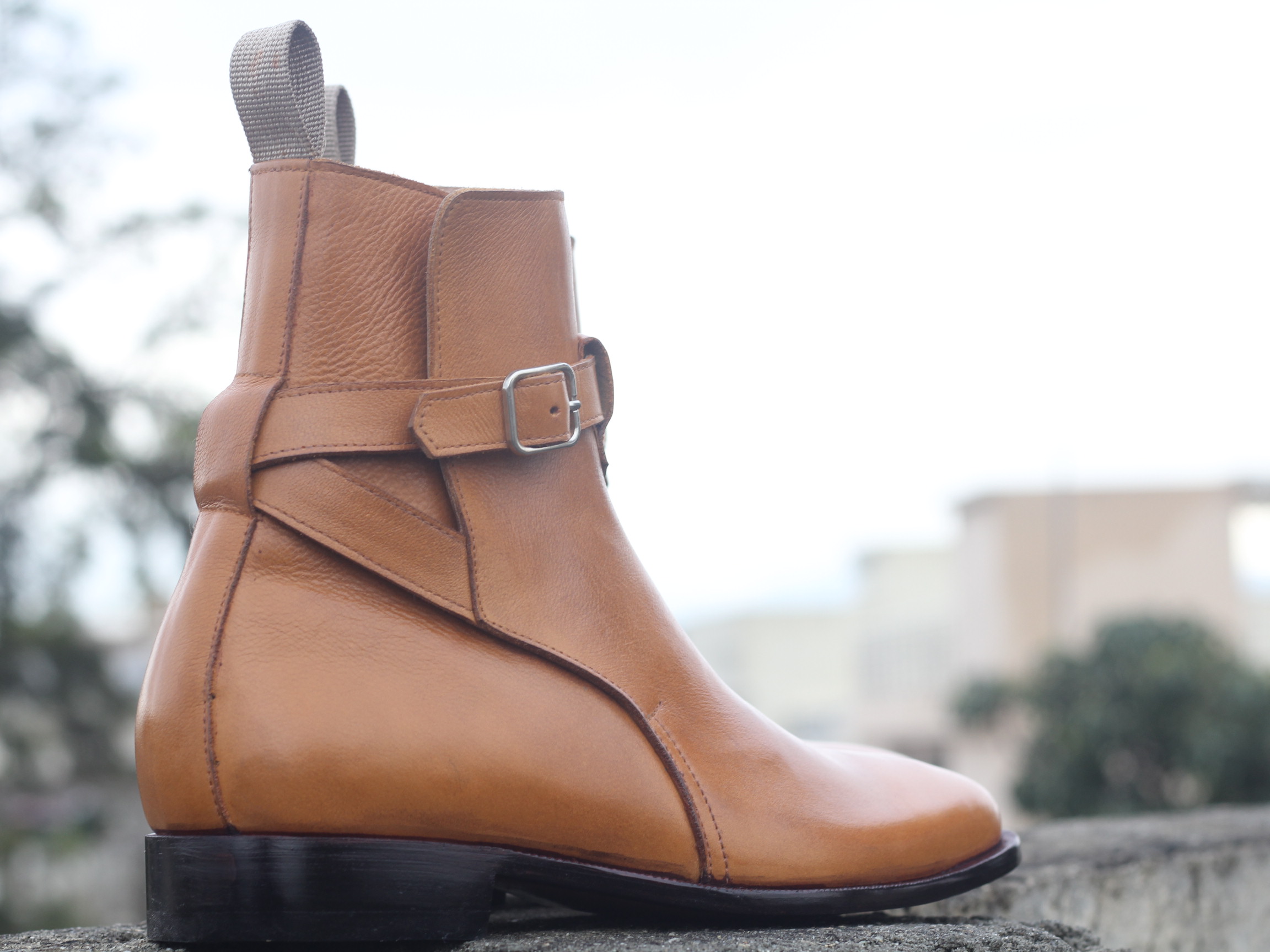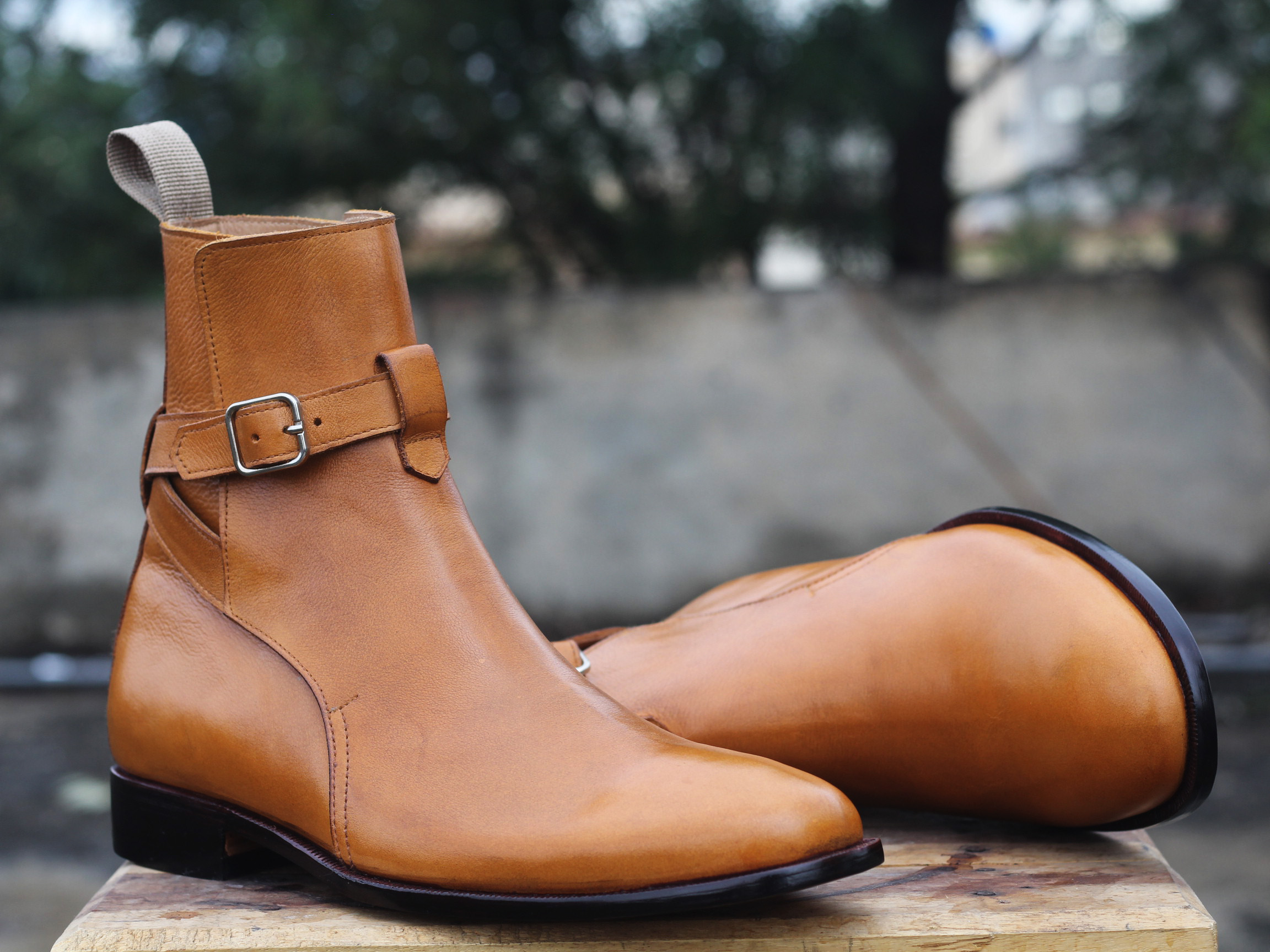 Handmade Ankle High Brown Leather Jodhpurs Boot For Men's