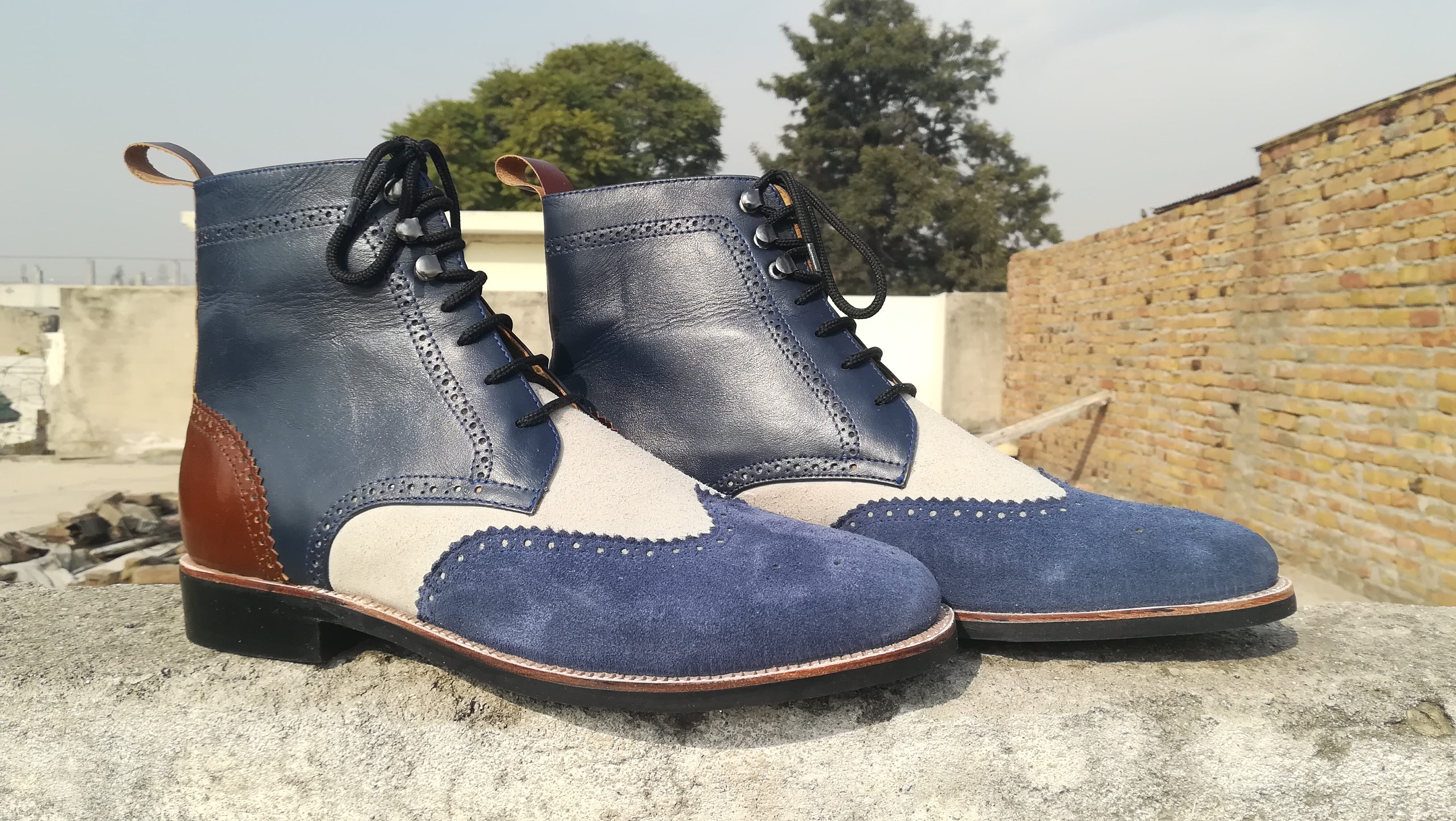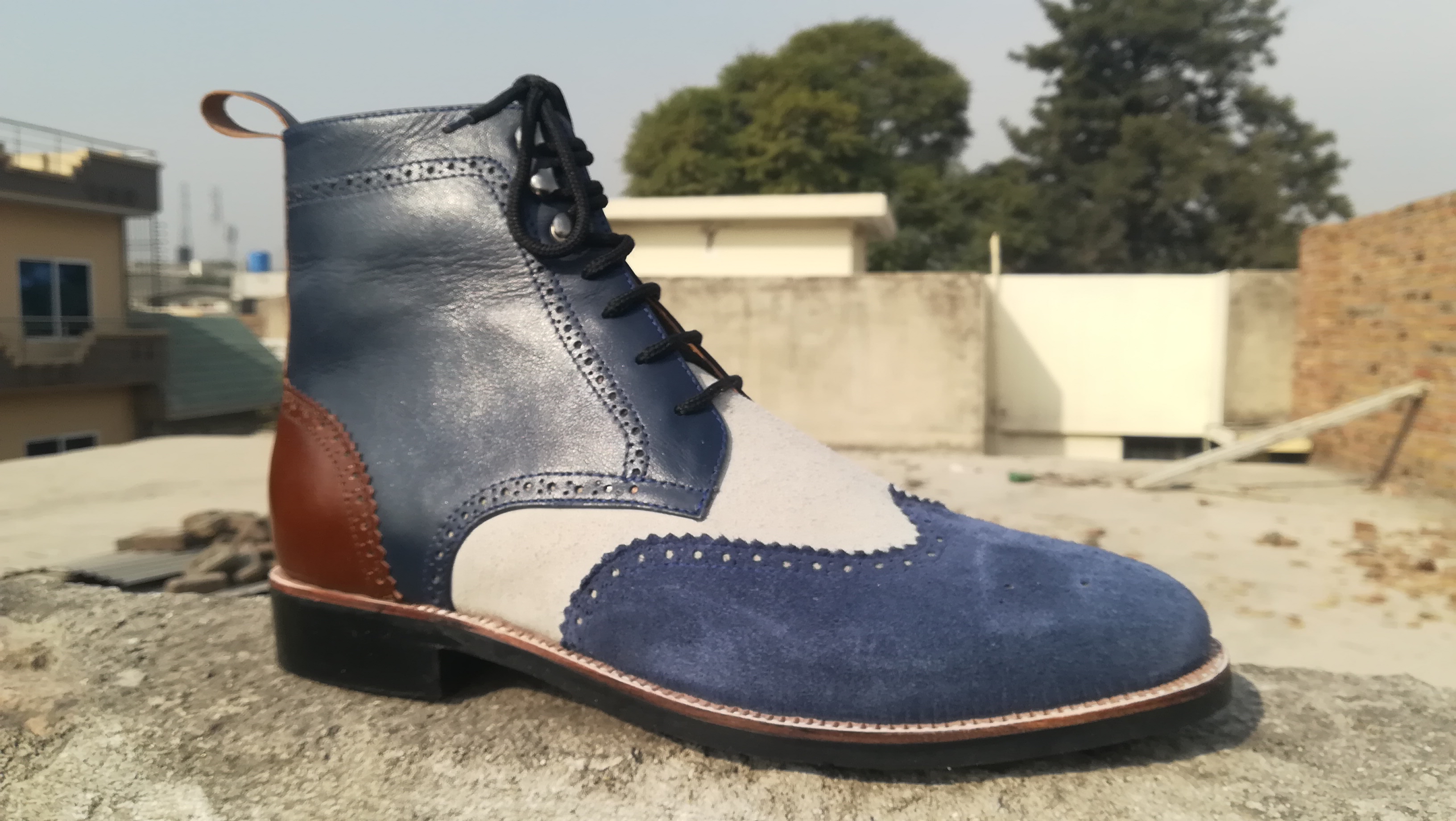 Handmade Men's Multi Color Leather Suede Wing Tip Ankle High Boot