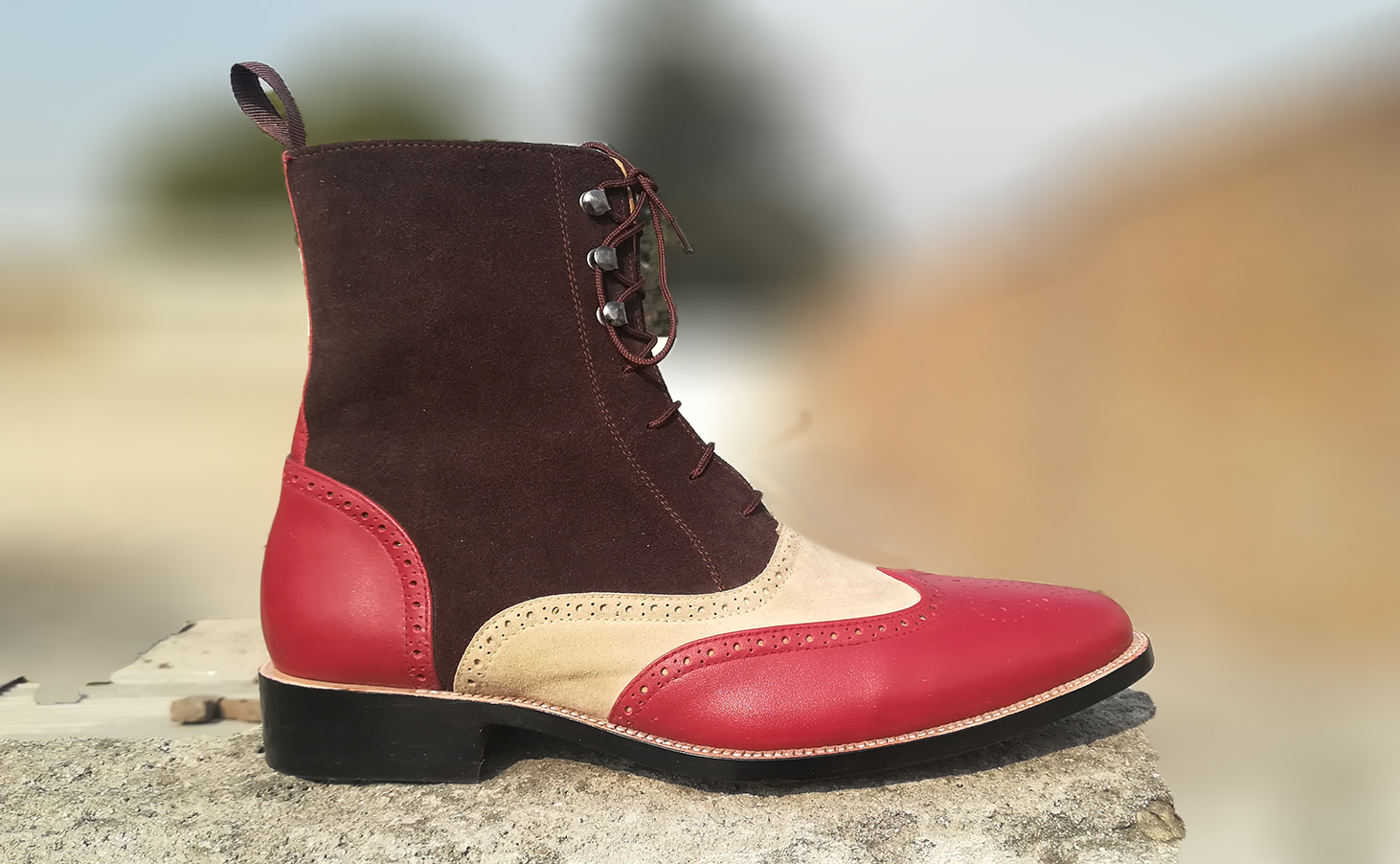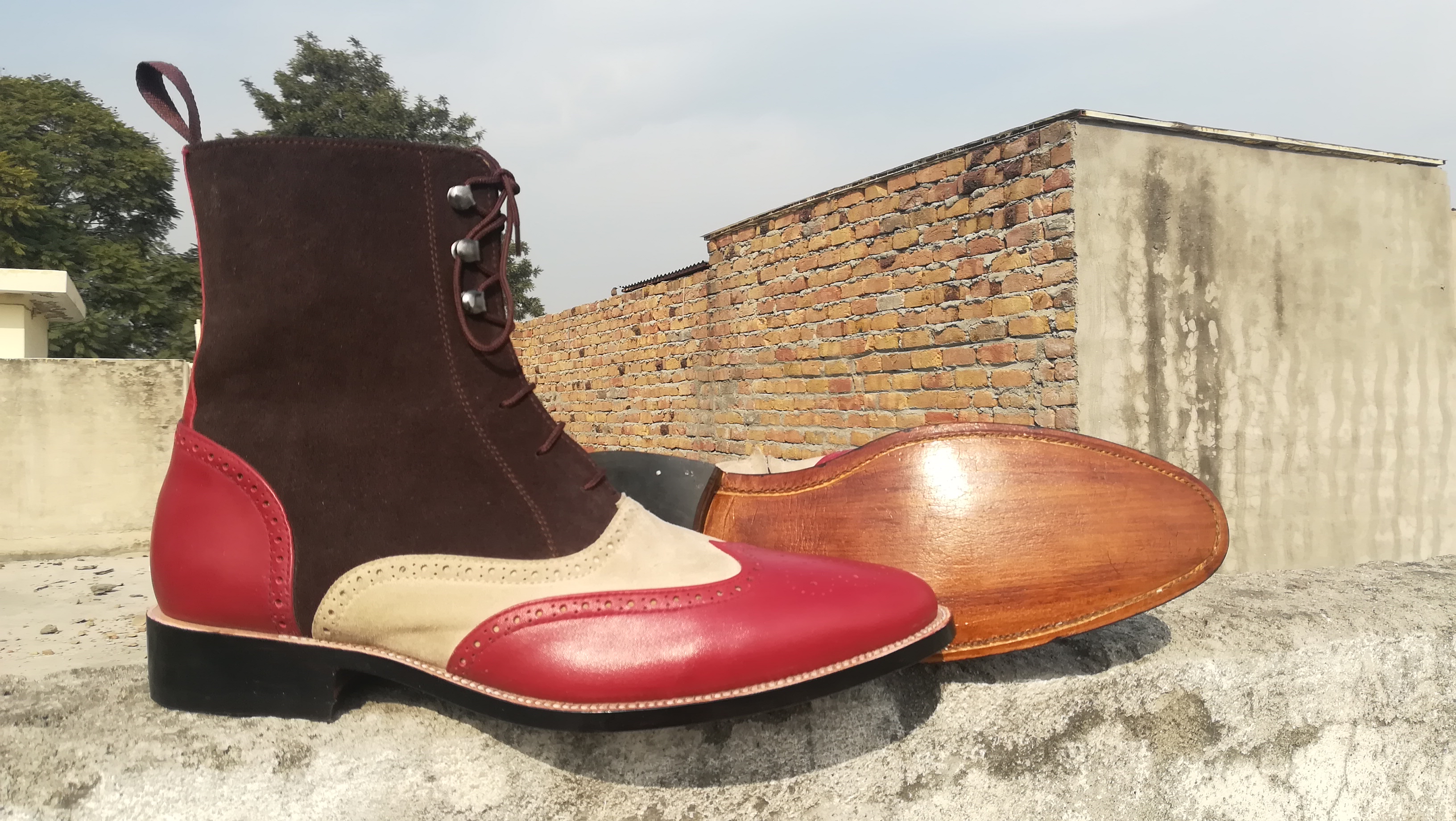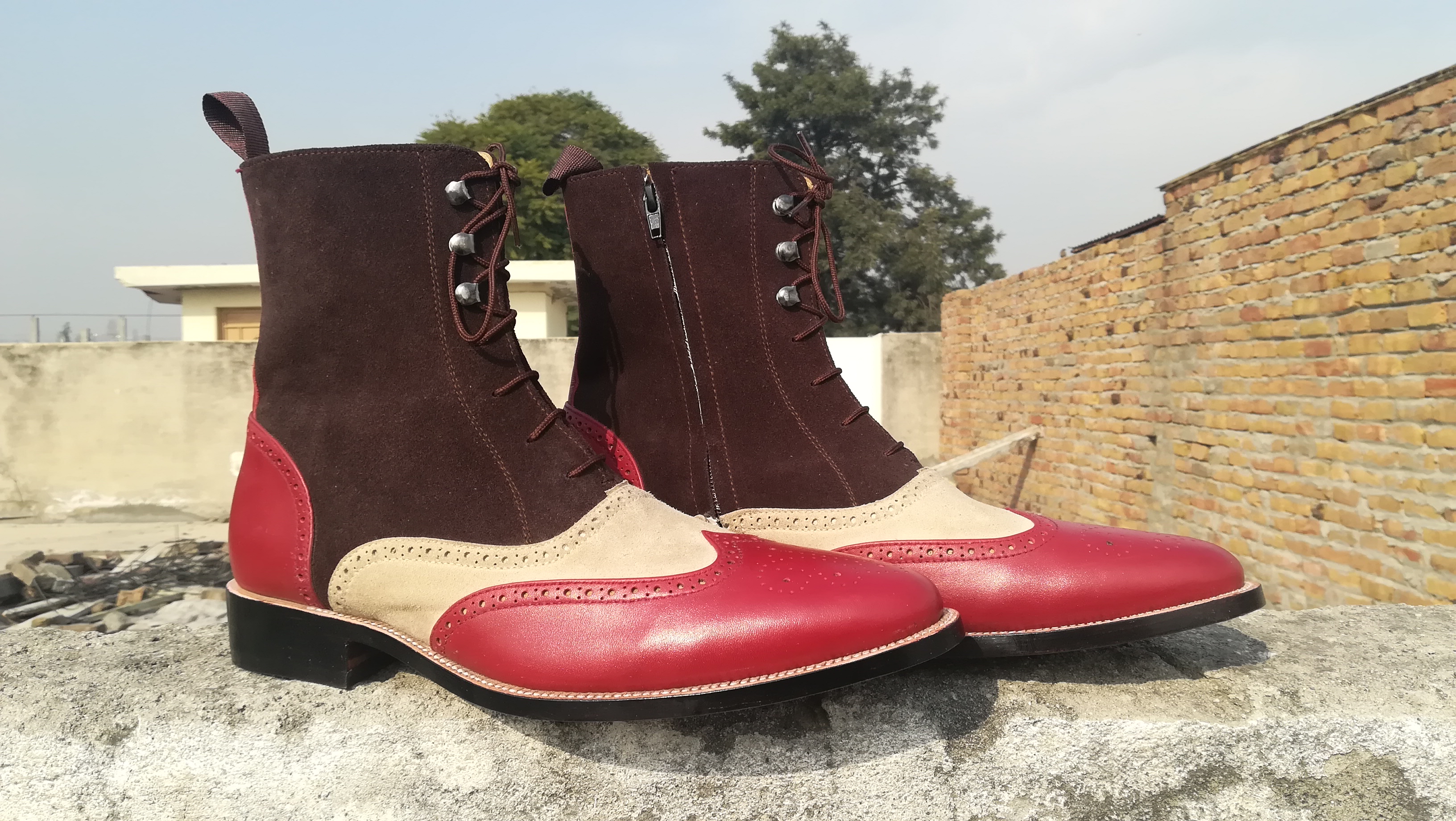 Men's Multi Color Leather Suede Wing Tip Brogue Ankle High Boots