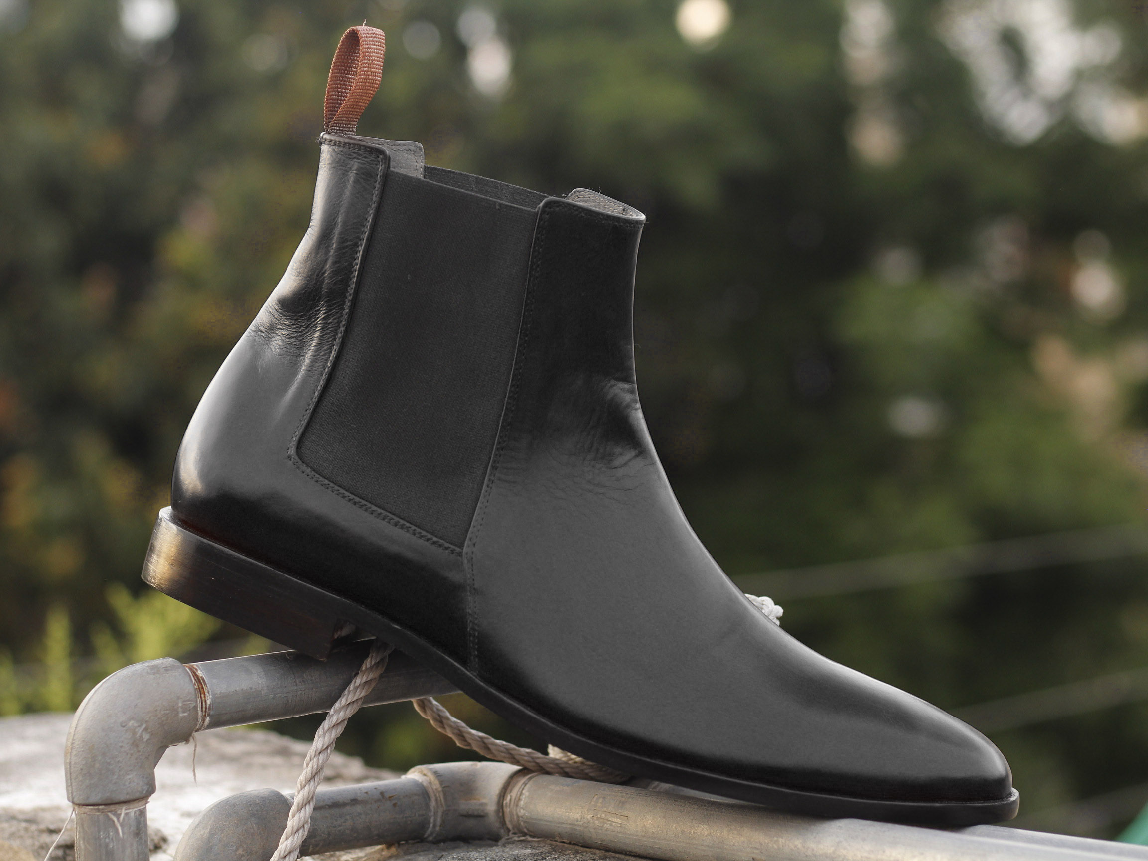 Handmade Men's Ankle High Black Leather Chelsea Boots