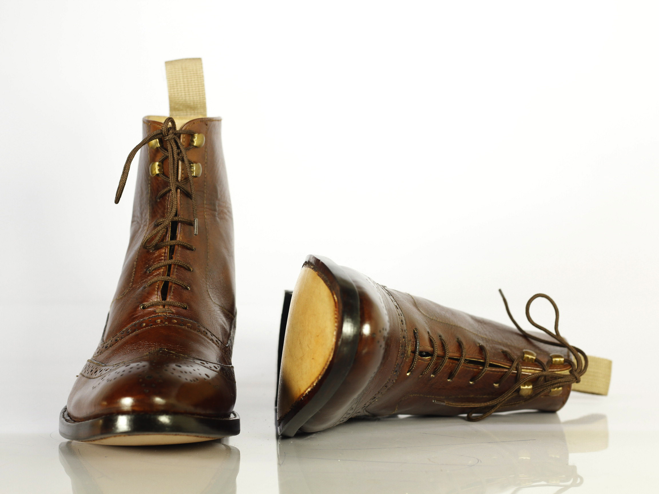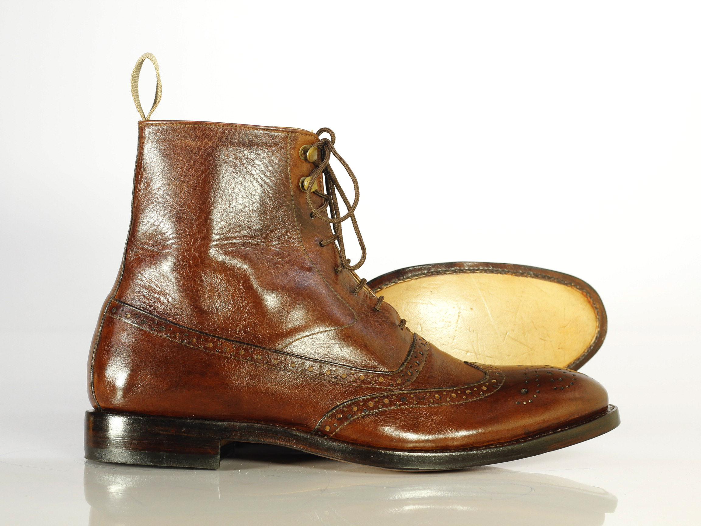 Handmade Men's Brown Wing Tip Brogue Ankle High Leather Boots