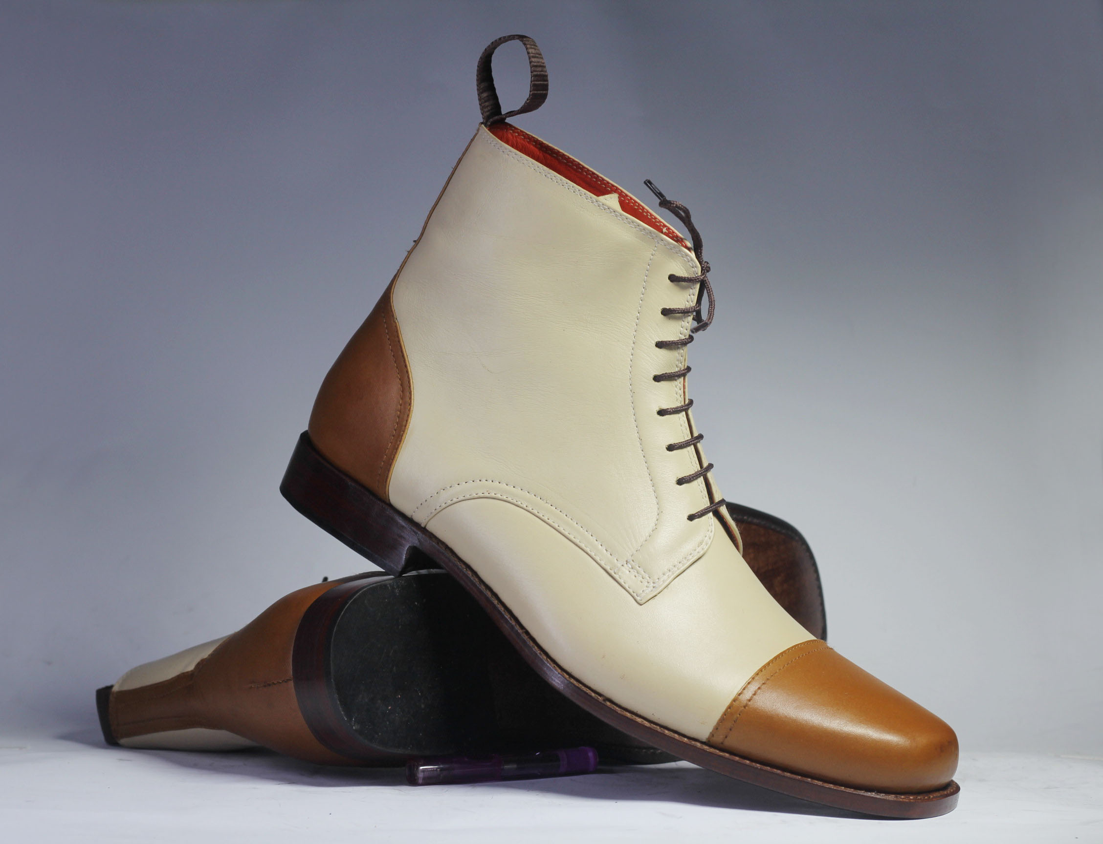 Men's Ankle Two Tone Cap Toe Leather Lace Up Dress Boot