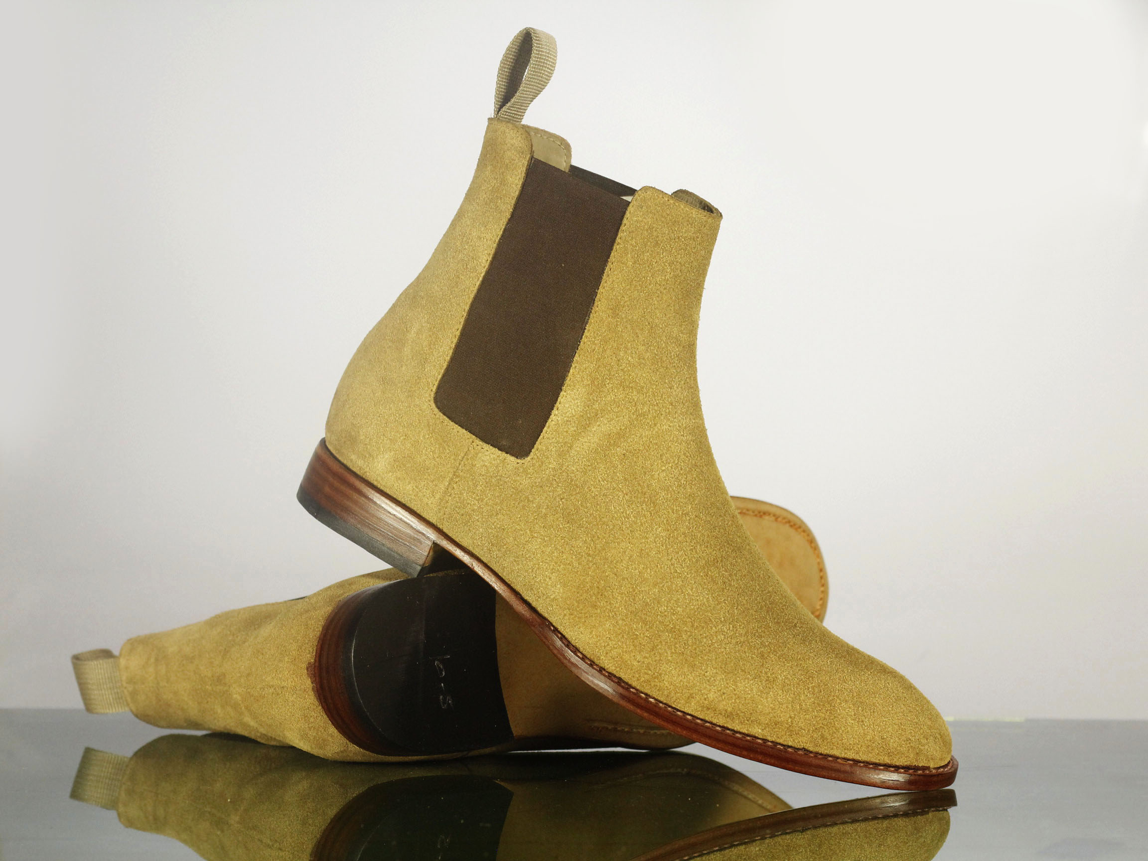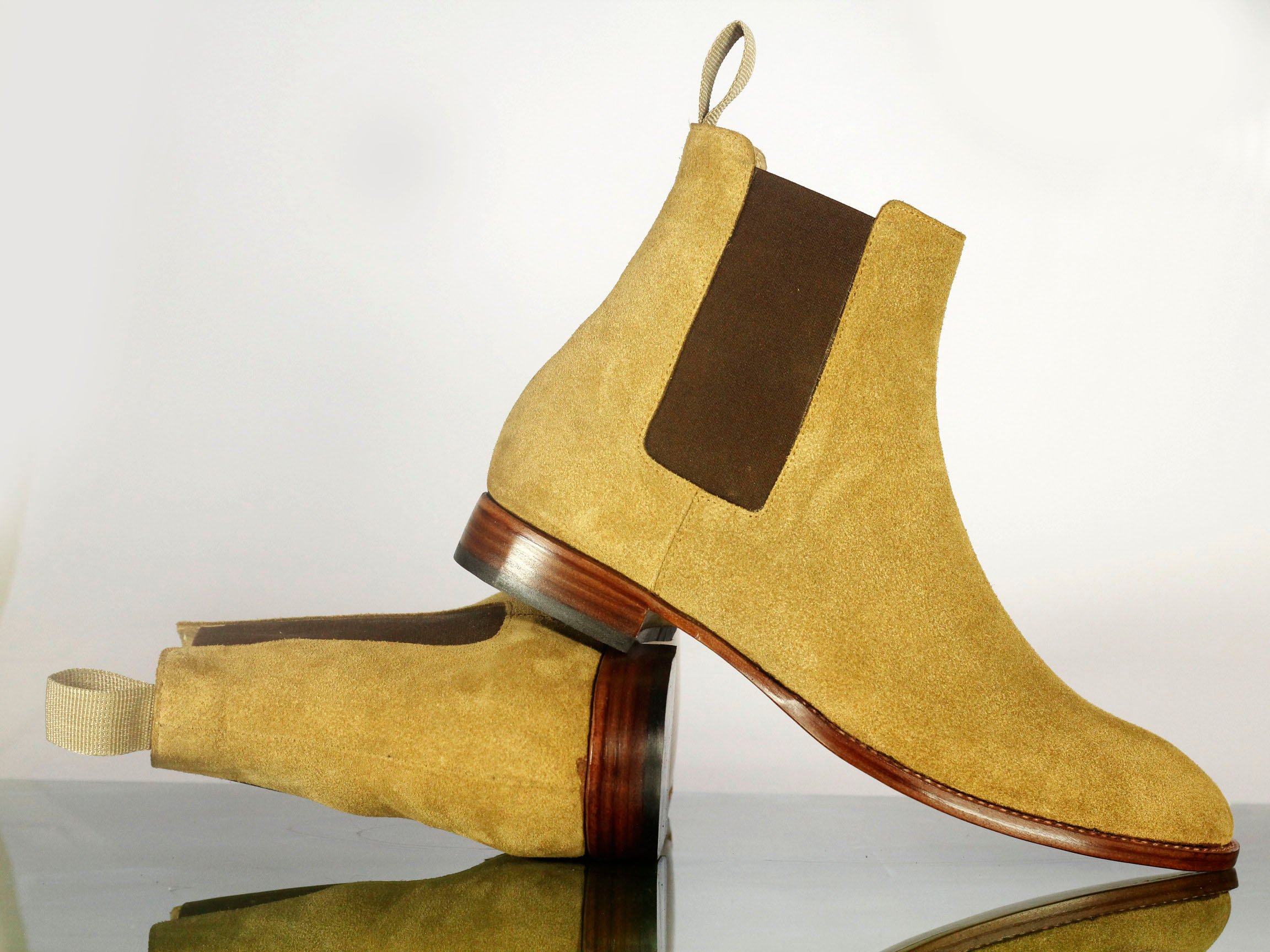 Handmade Men's Beige Suede Chelsea Dress Formal Boots