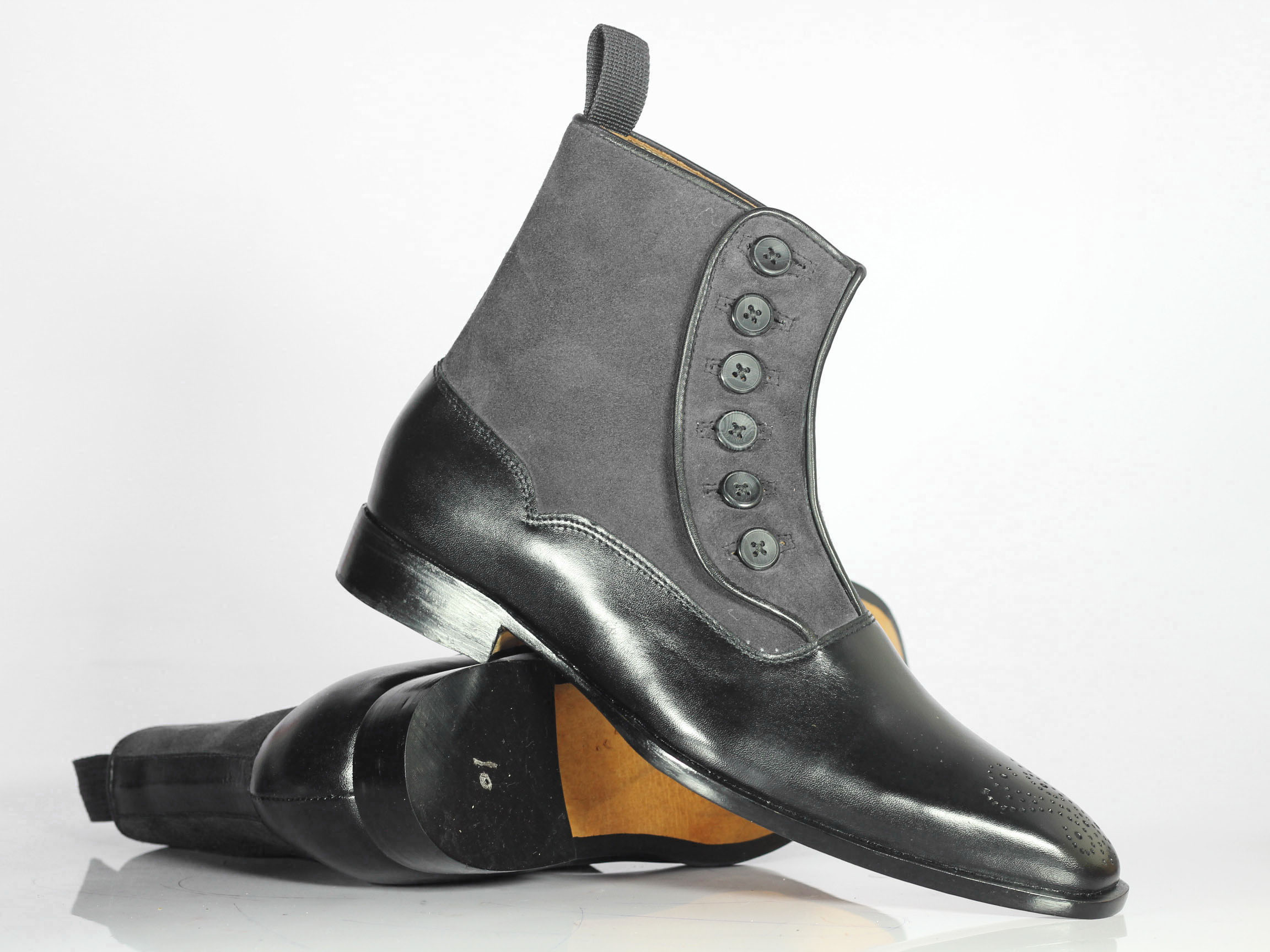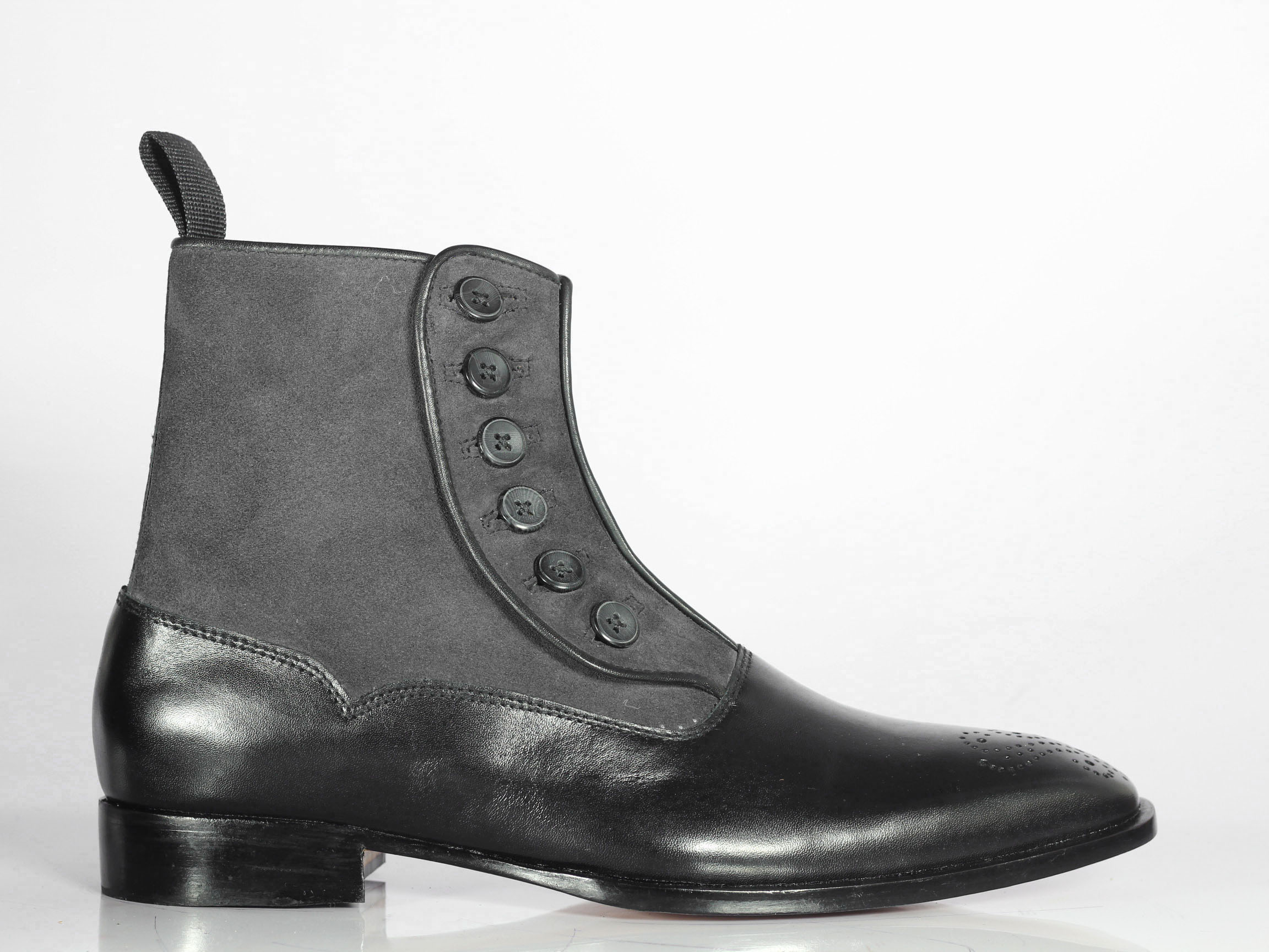Handmade Men's Fashion Black Gray Button Top Ankle Suede Leather Boots, Men's Formal Leather Boots