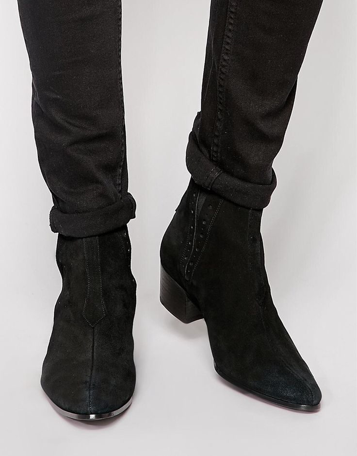 Handmade Men Black Chelsea Formal Suede Ankle High Boots