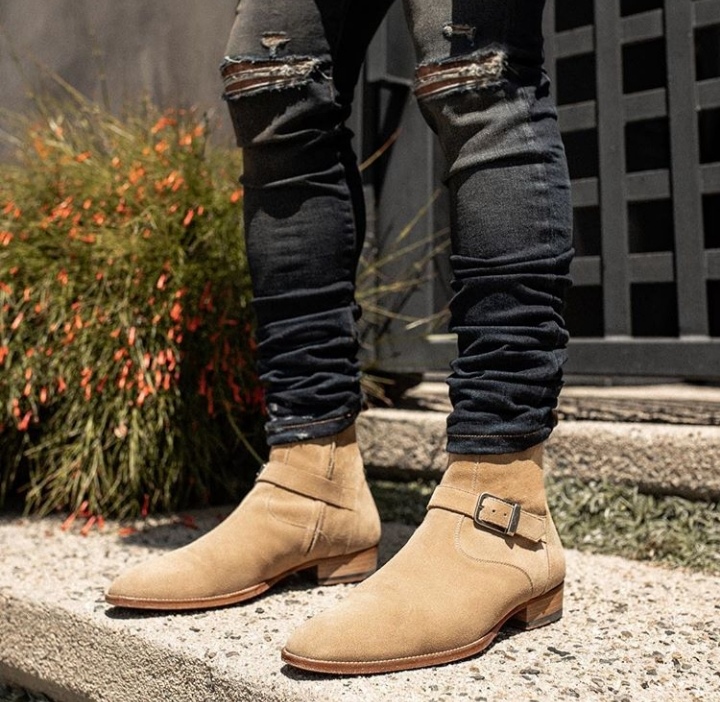 Handmade Beige Jodhpurs Ankle High Suede Boots