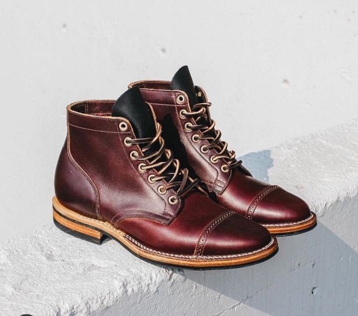 Handmade Men's Burgundy Cap Toe Lace Up Leather Boots