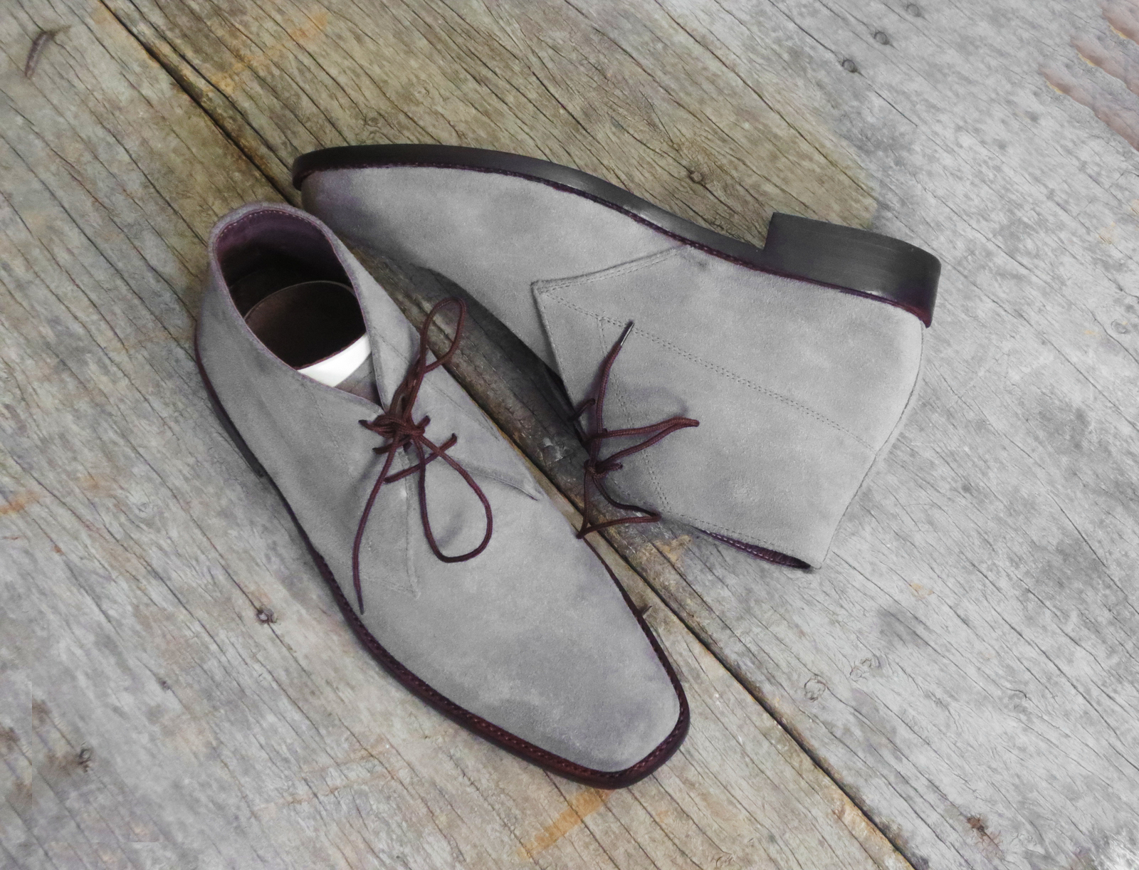 Handmade Men's Gray Chukka Party Wear Premium Suede Boots