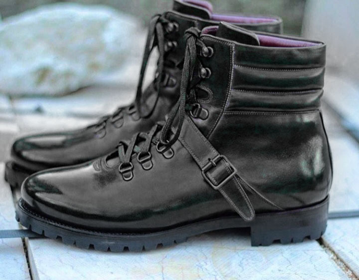 Handmade Men's Black Lace Up Strap Ankle Boots
