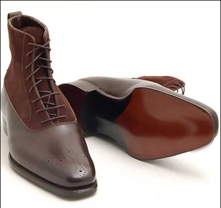 Handmade Men's Brown Brogue Toe Leather & Suede Lace Up Ankle Boots