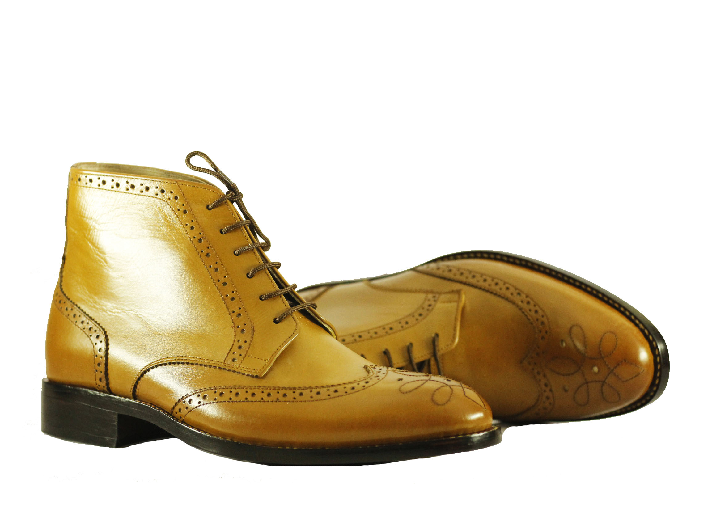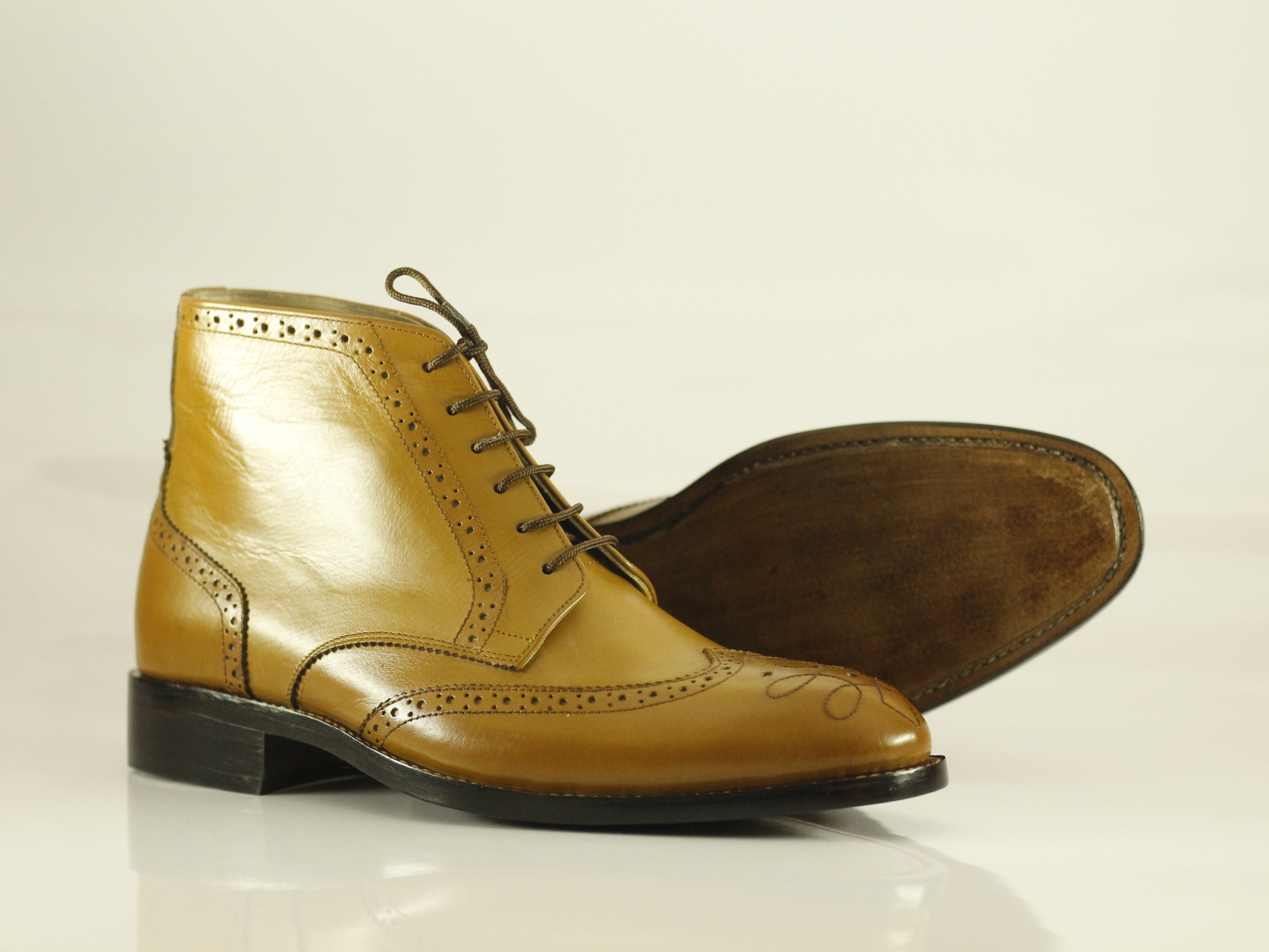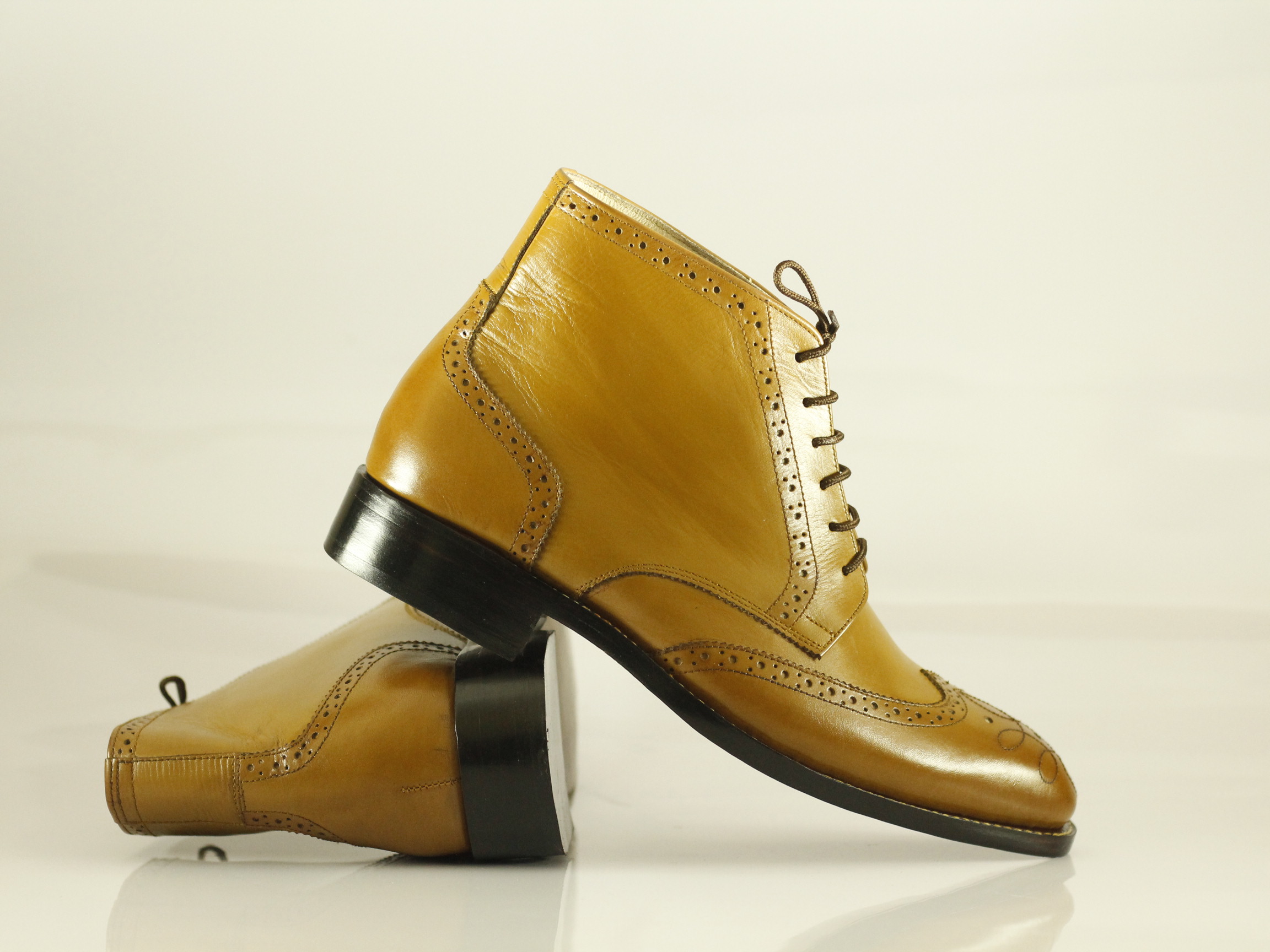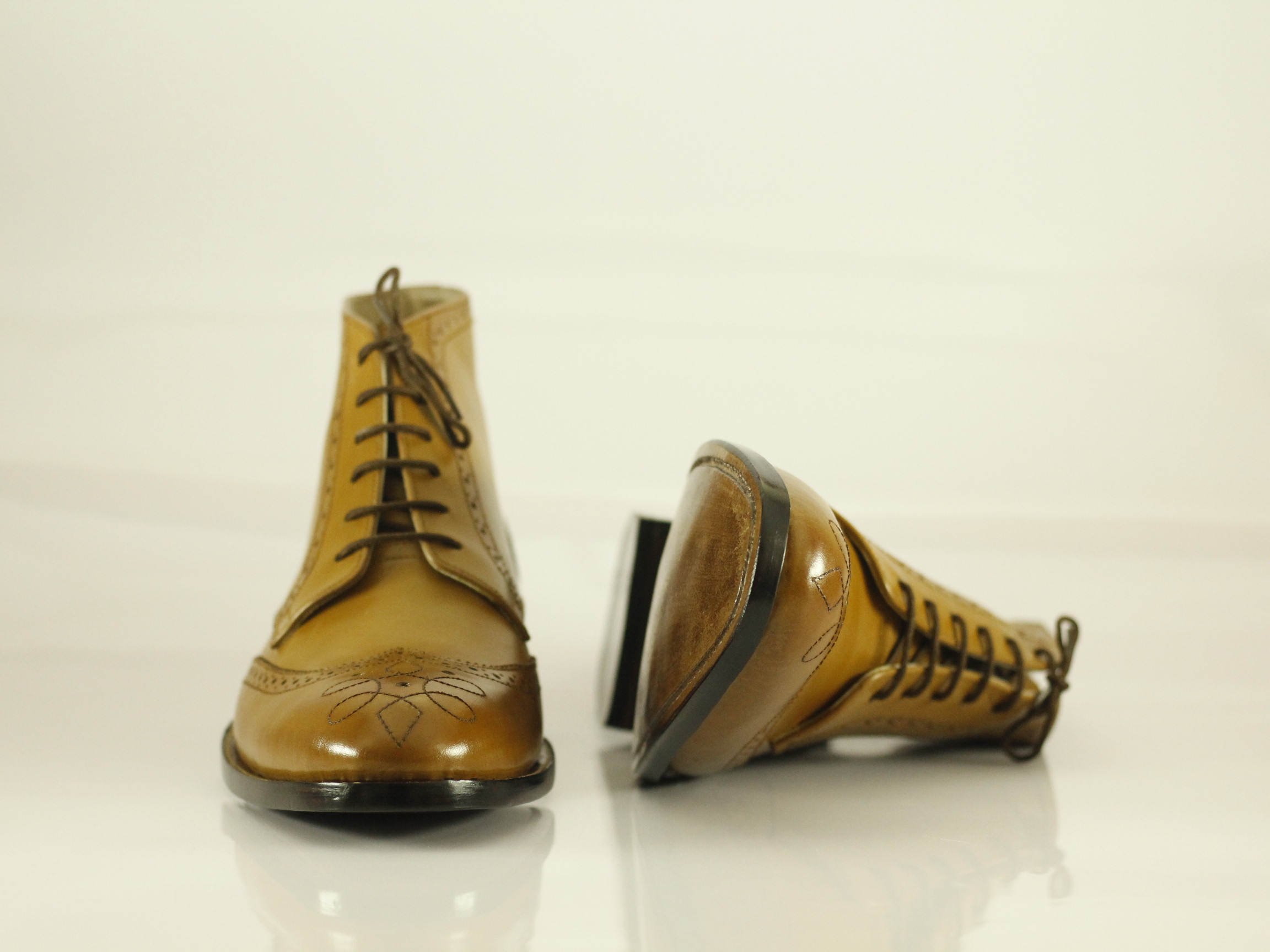 Handmade Men's Brown Color Wing Tip Brogue Leather Ankle High Dress Boots