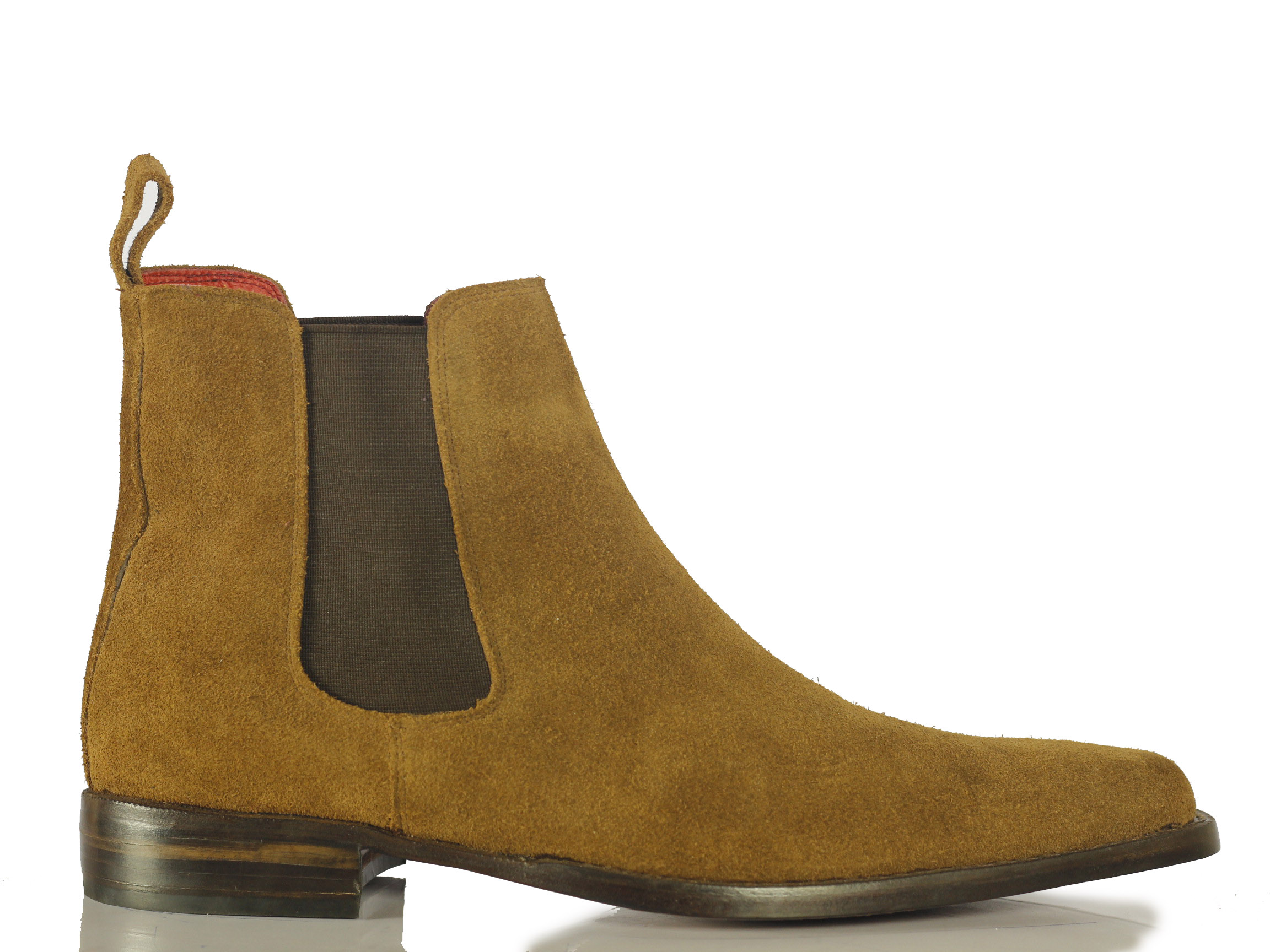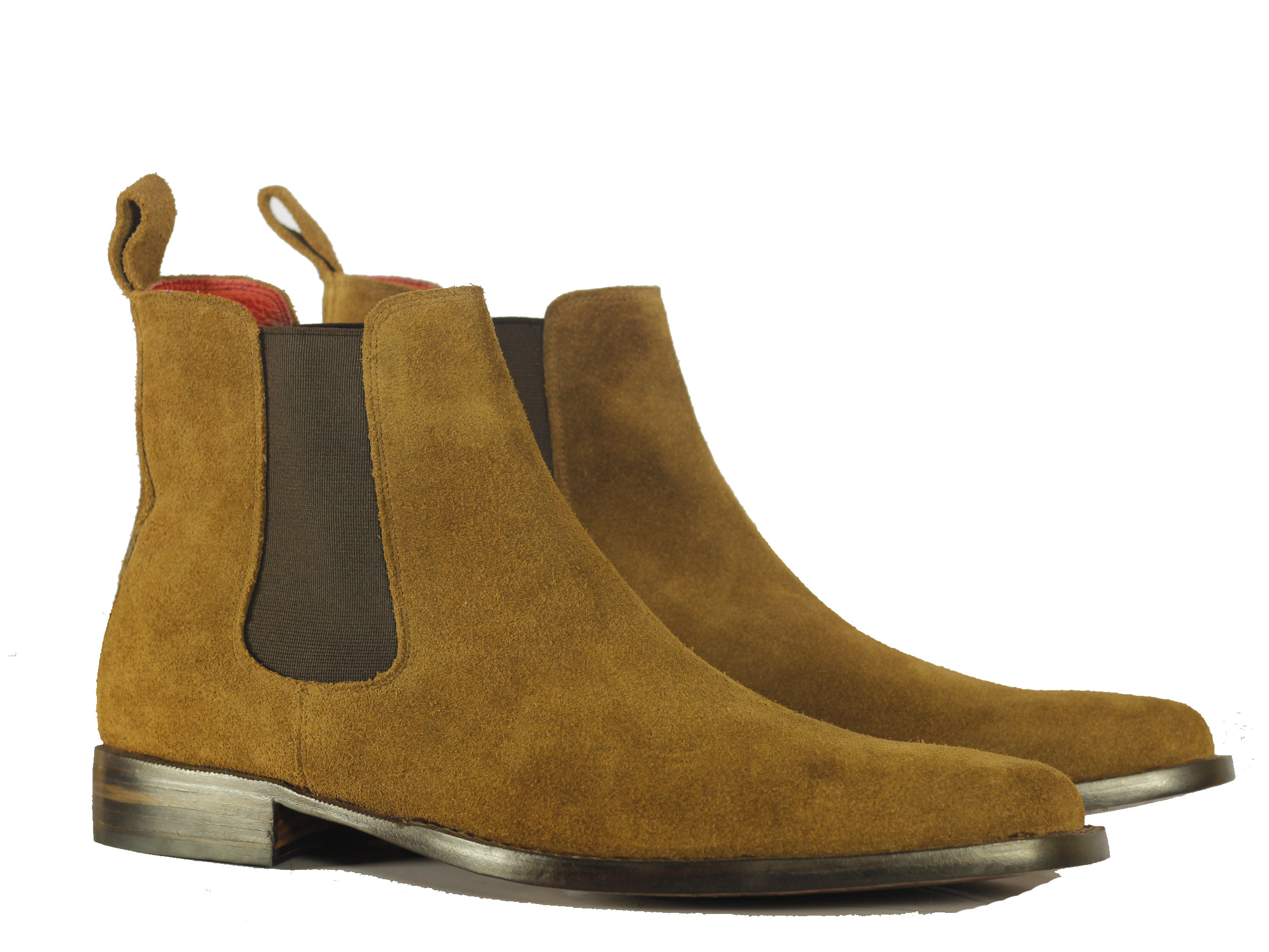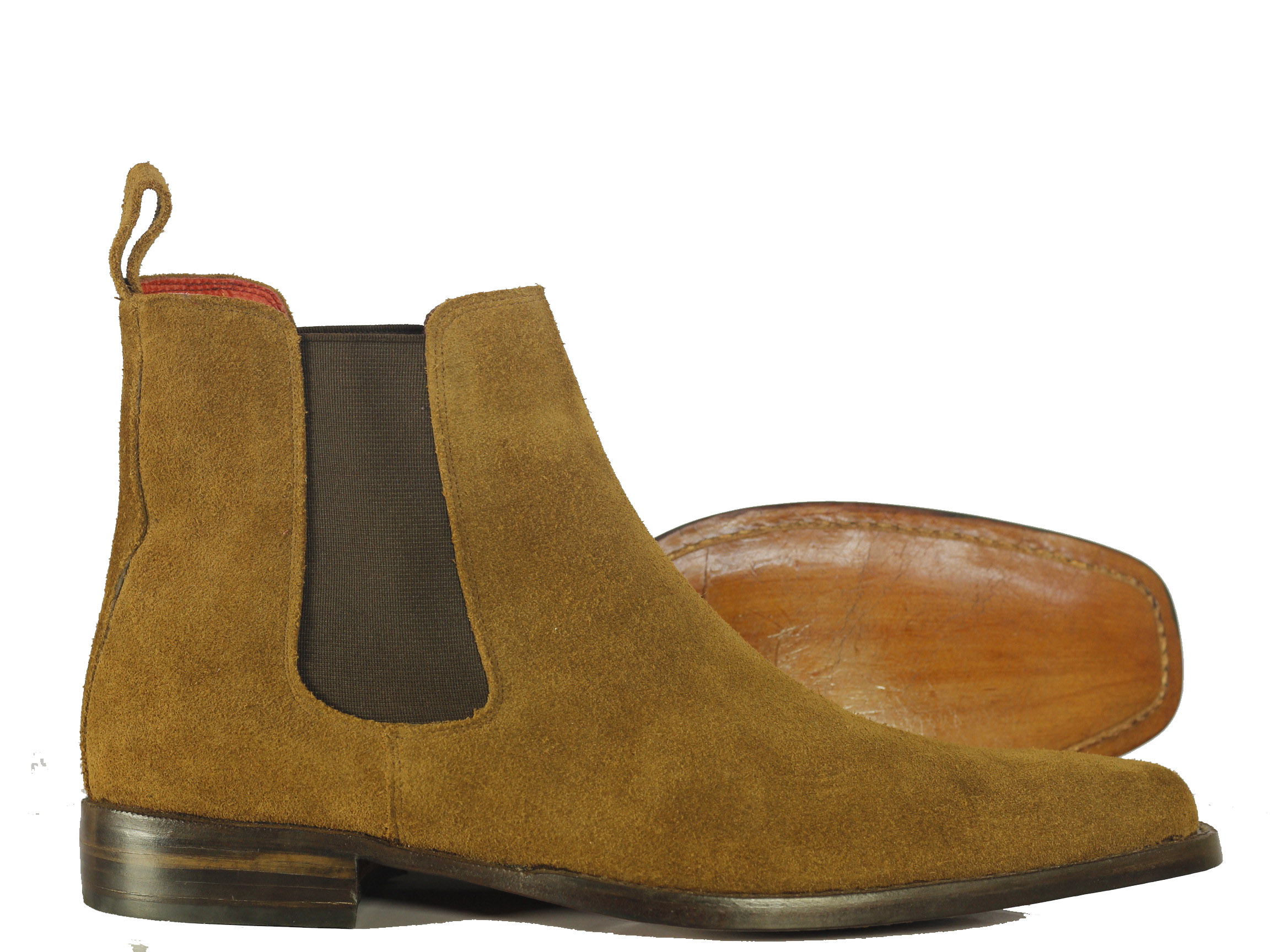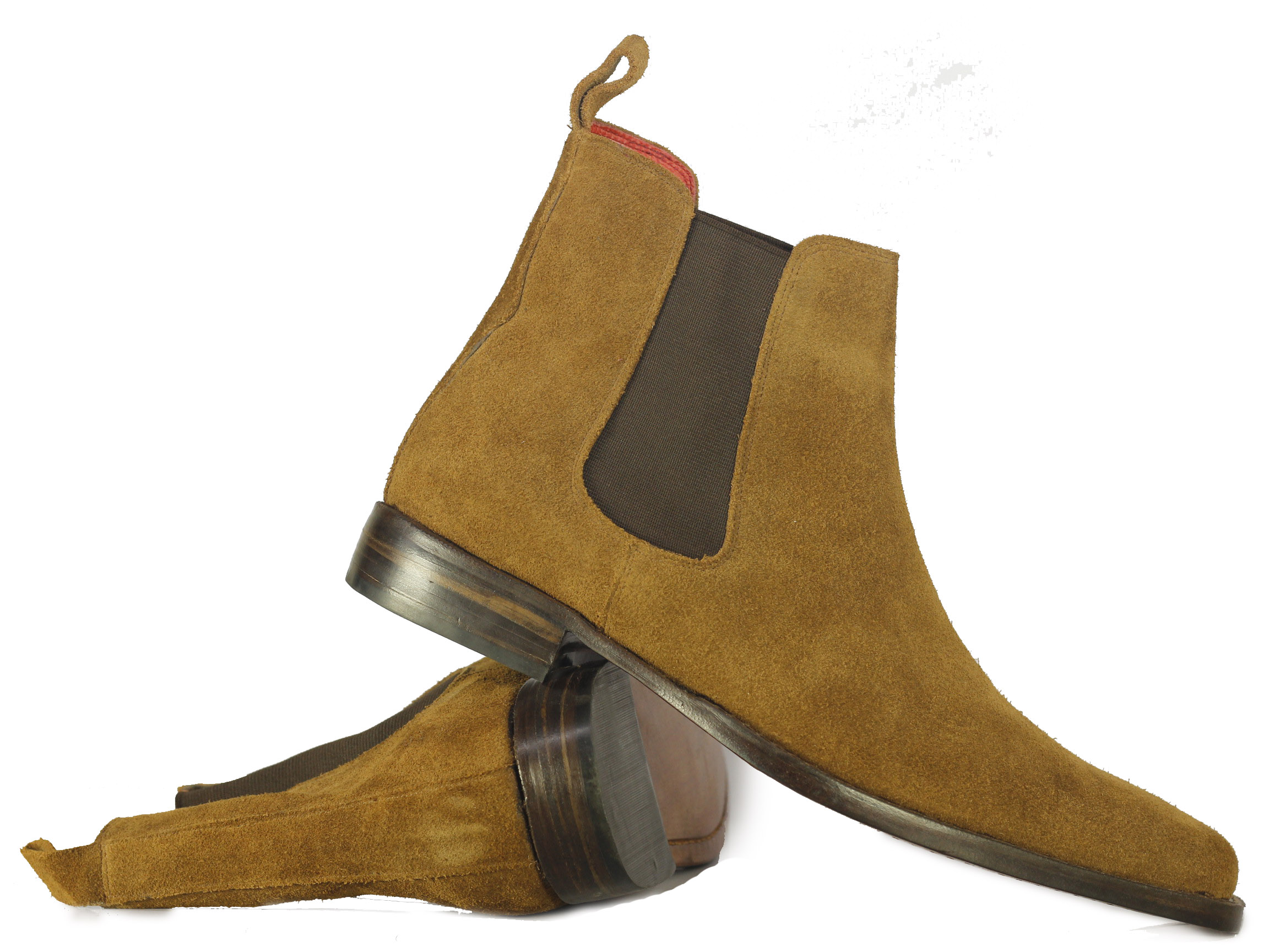 Handmade Brown Suede Chelsea Ankle High Dress Boots For Men's