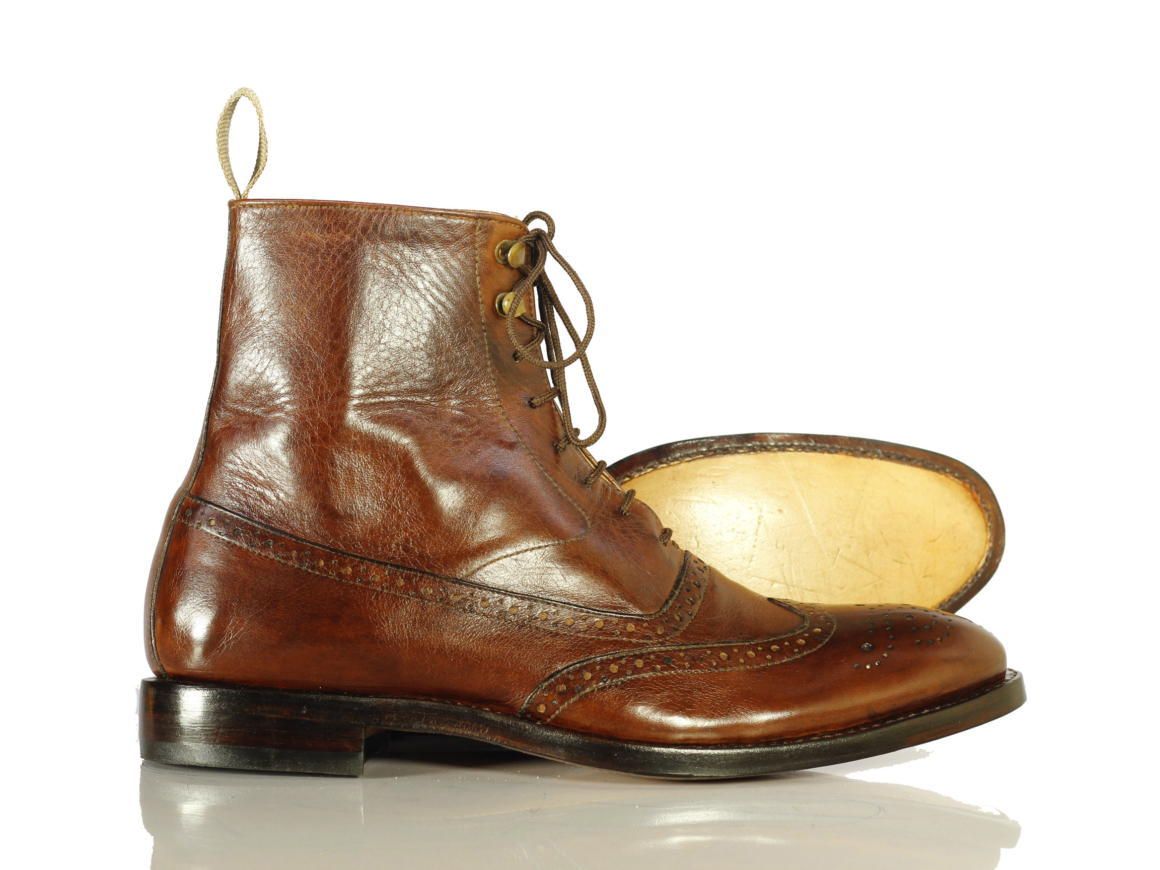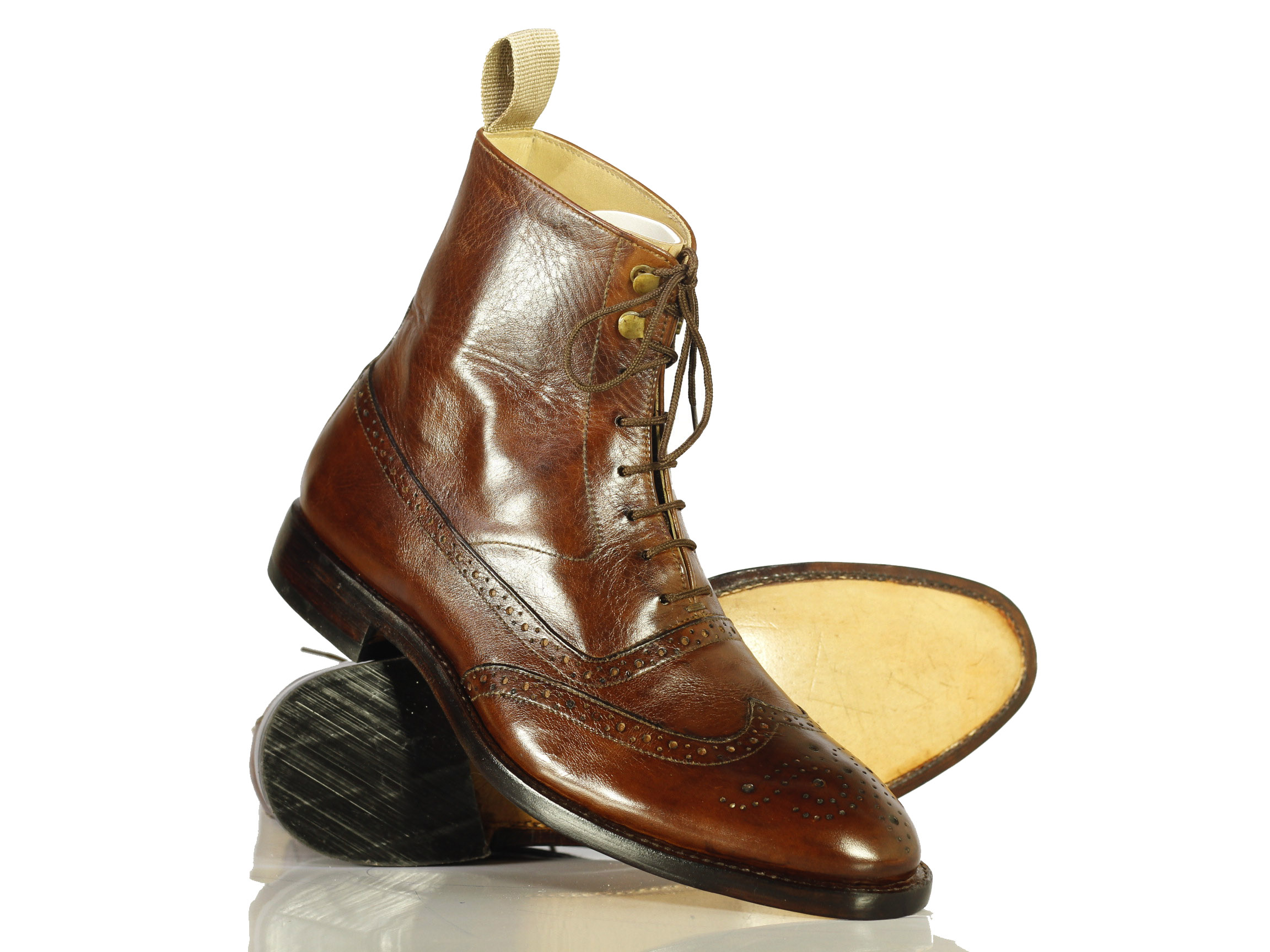 Handmade Men's Burgundy Color Wing Tip Brogue Leather Ankle High Dress Boots