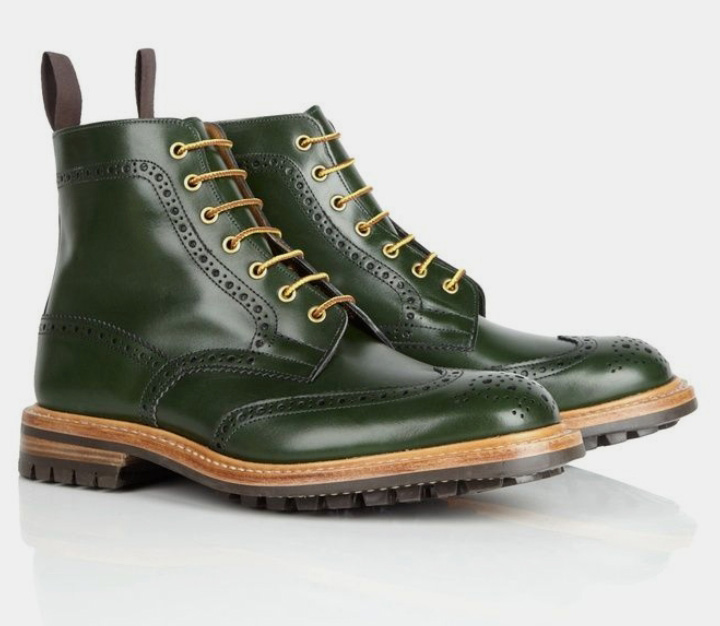 Handmade Men's Green Color Ankle Wing Tip Brogue Leather Dress Boots