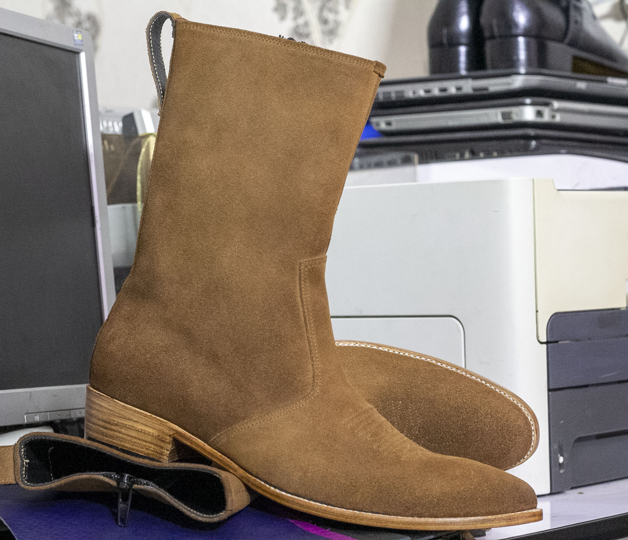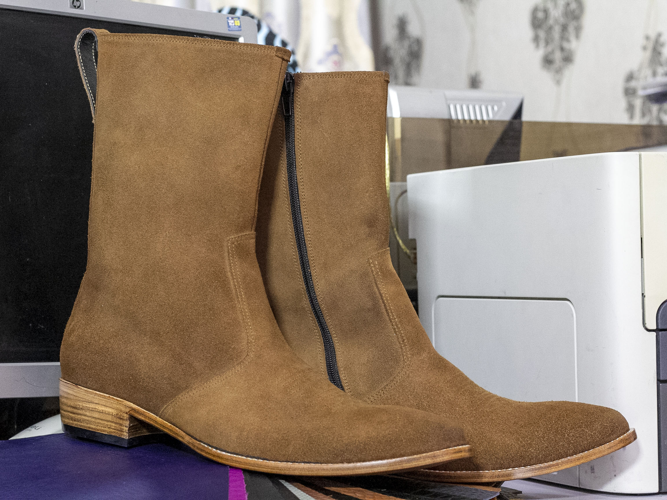 Ankle High Side Zipper Suede Men's Handmade Boot