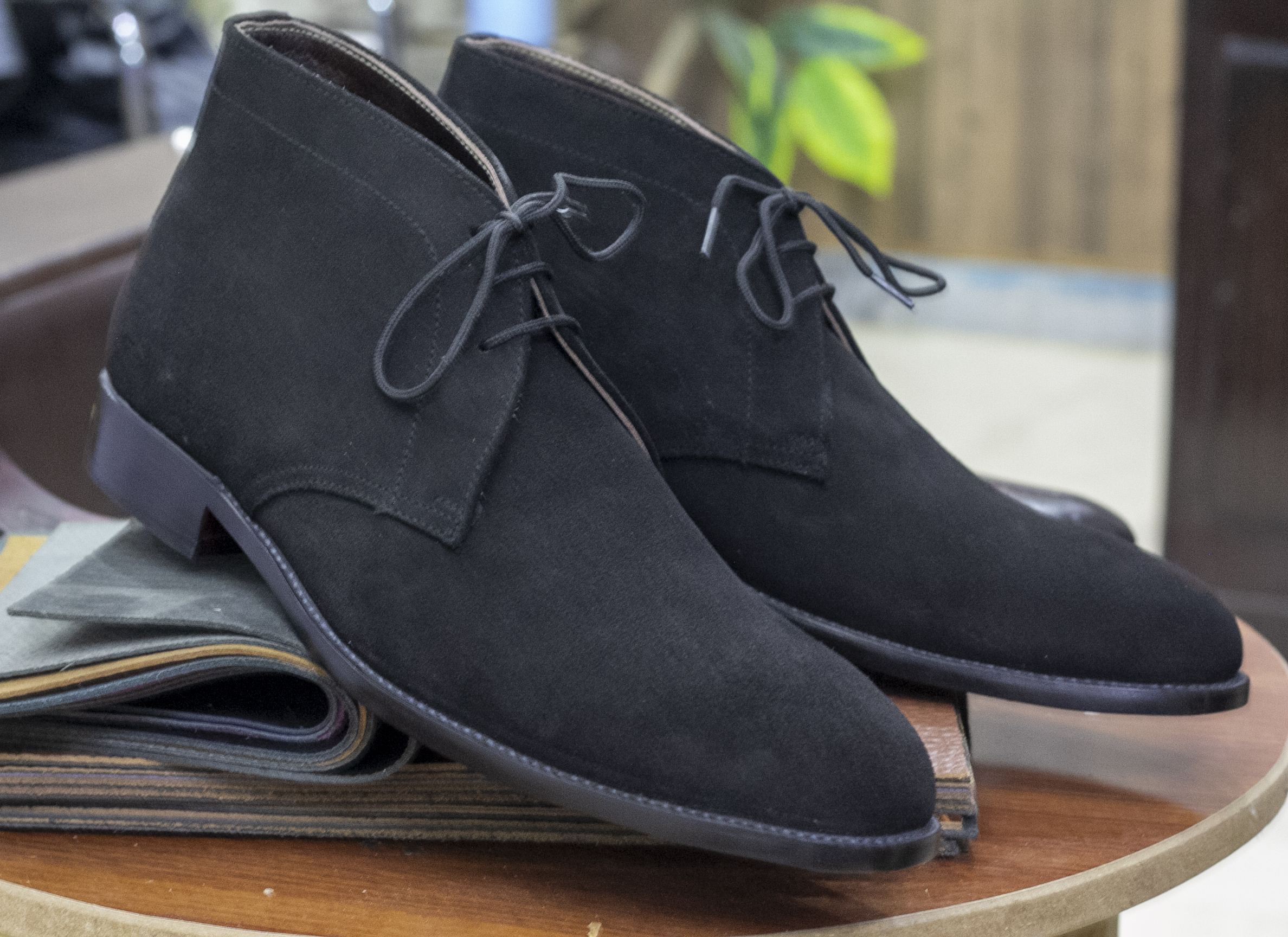 Black Chukka Suede Half Ankle Boot, Handmade Men's Boot