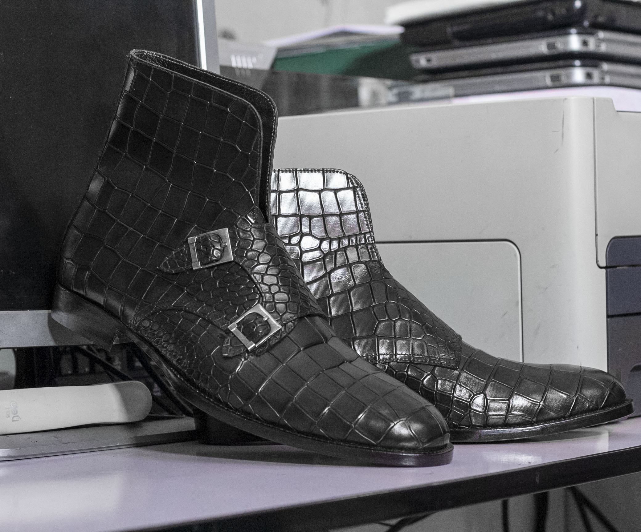 Handmade Double Monk Alligator Texture Oxford Boot For Men's