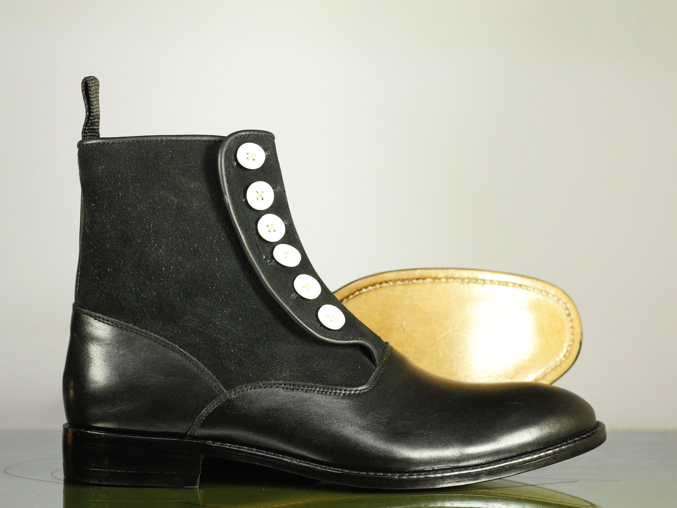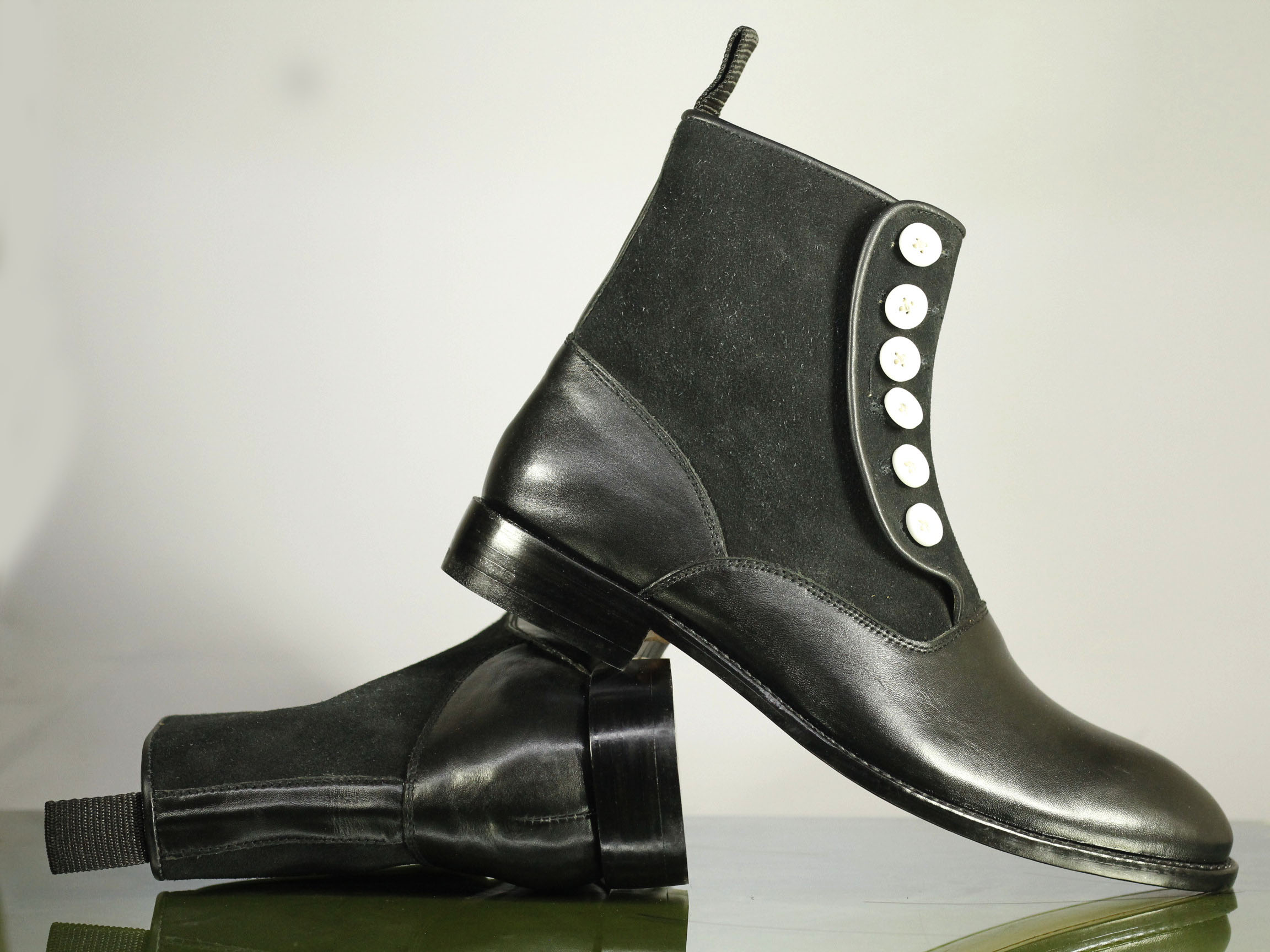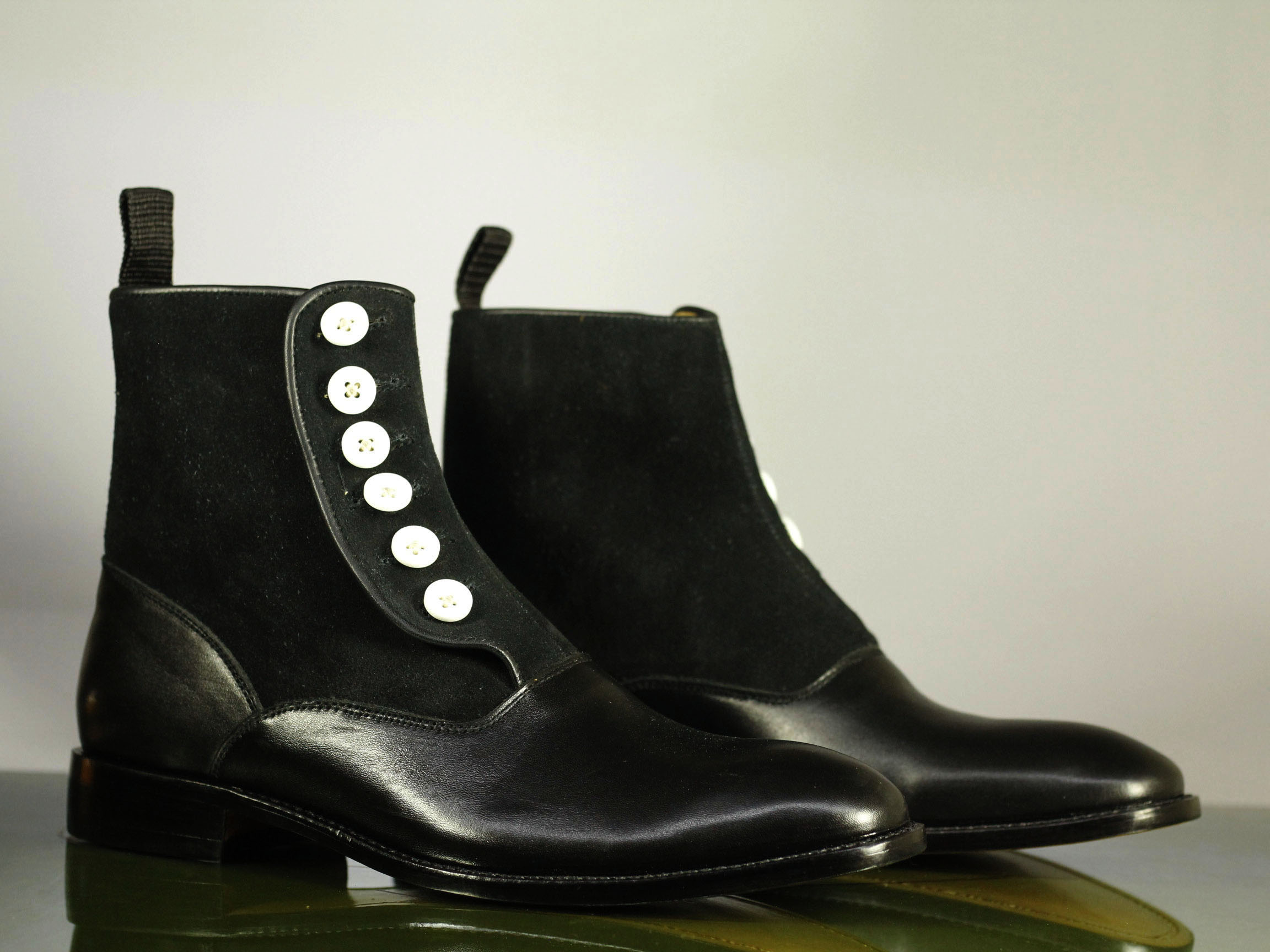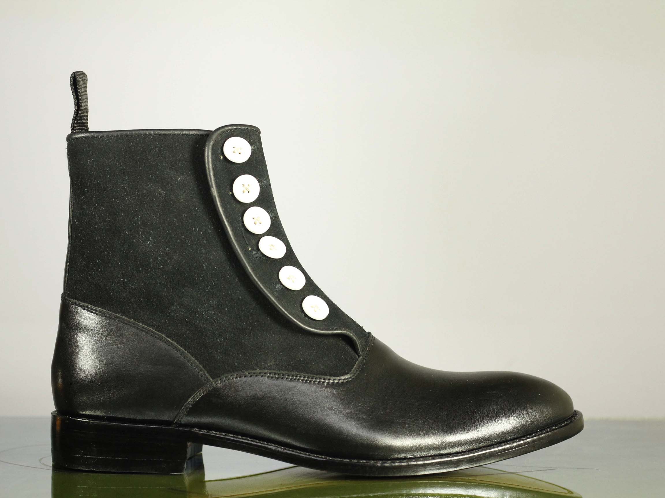 Black Button Top Leather Suede ,Ankle High Boots, Handmade Men's Fashion Boot
