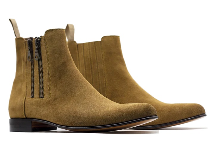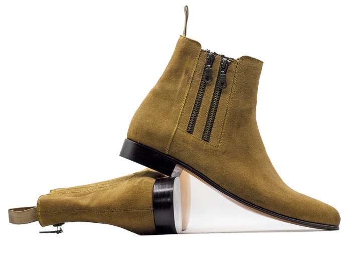 Handmade Men's Ankle High Double Zipper Chelsea Suede Formal Boot