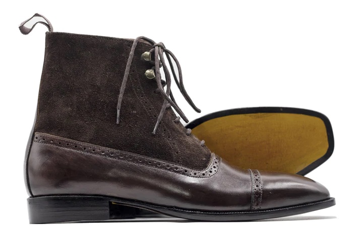 Ankle High Dark Brown Handmade Boot Leather Suede Cap Toe Style Boot