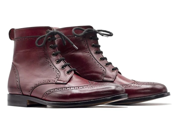 Ankle High Handmade Cordovan Ankle Boot, Men's Wing Tip Style Pure Leather Boot
