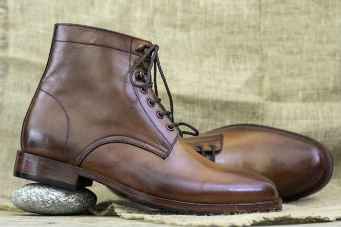 New Classic Ankle High Handmade Brown Leather Boot For Men's