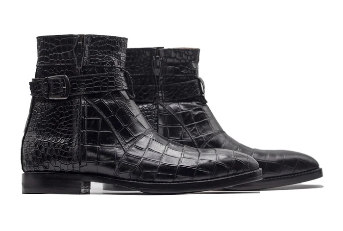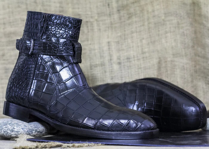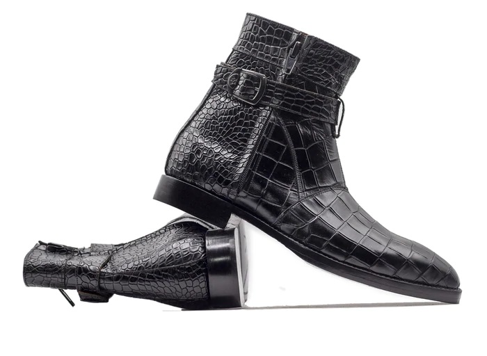 Men's Ankle High Black Alligator Zipper Boot, Handmade Stylish Boot