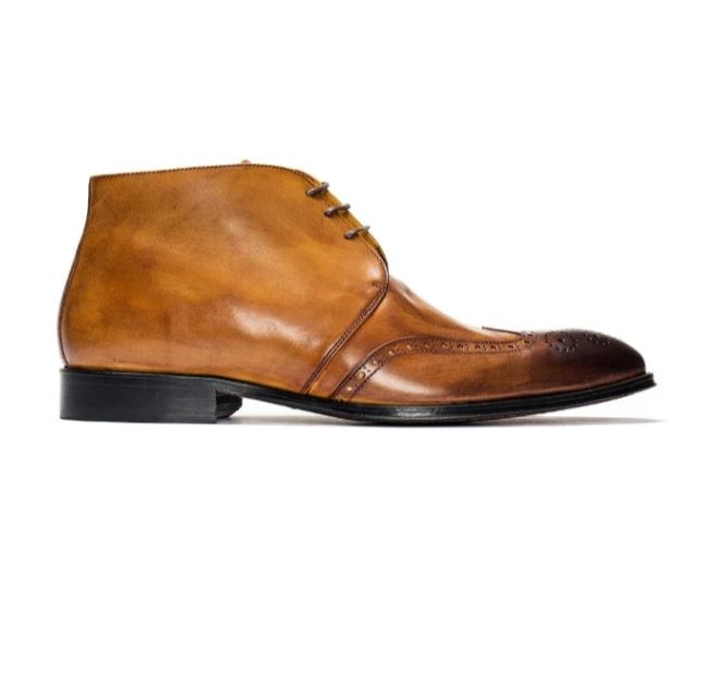 Handmade Men's Chukka Boot, Men's Tan Brown Black Leather Wing Tip Lace Up Casual Boot