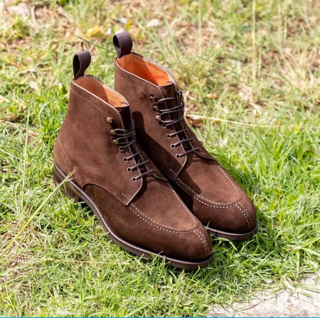 Men's Handmade Dark Brown Colour Split Toe Suede Lace up Boots