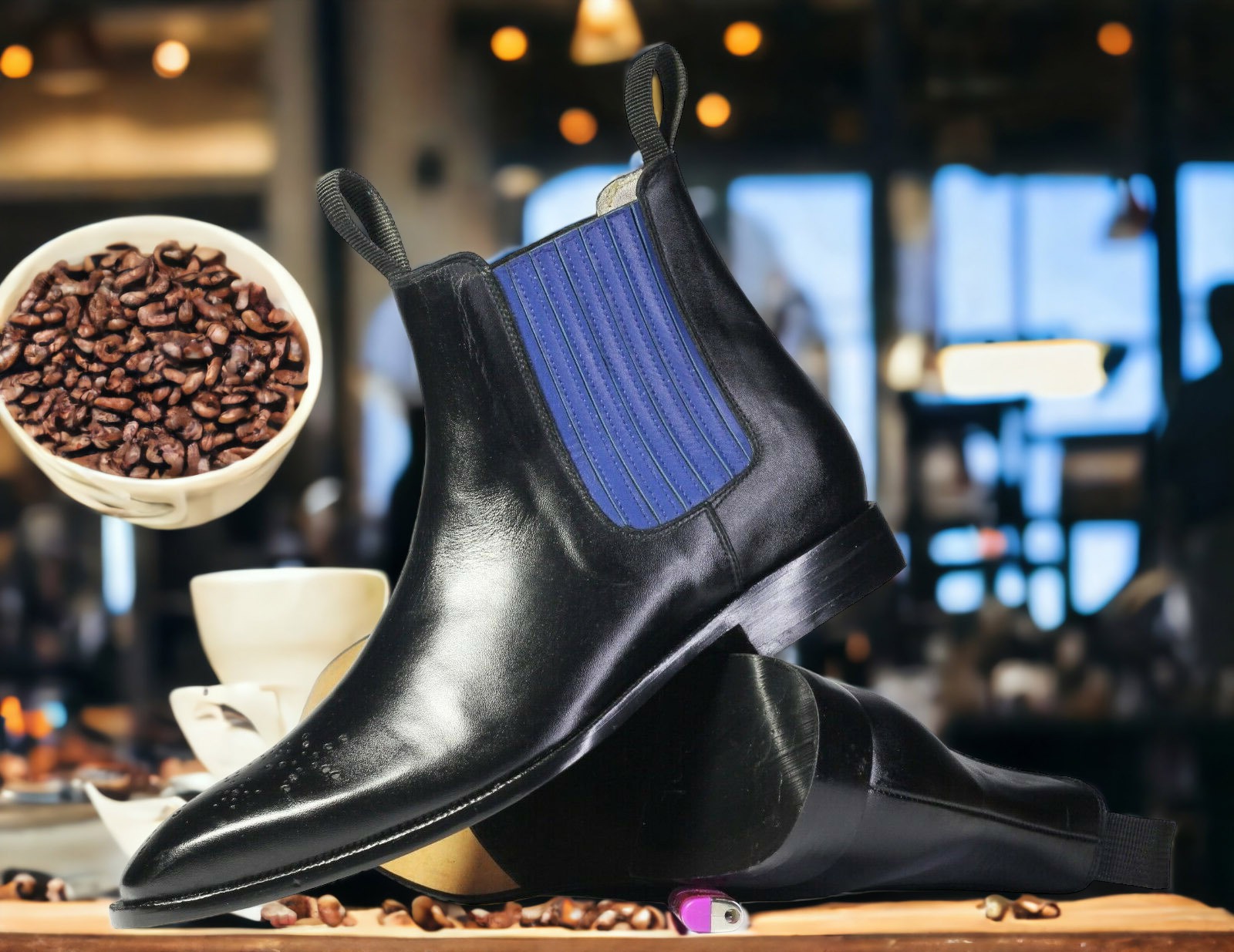 Handmade Black Blue Chelsea Style Genuine Hand Painted Leather Boots,Men's Boots