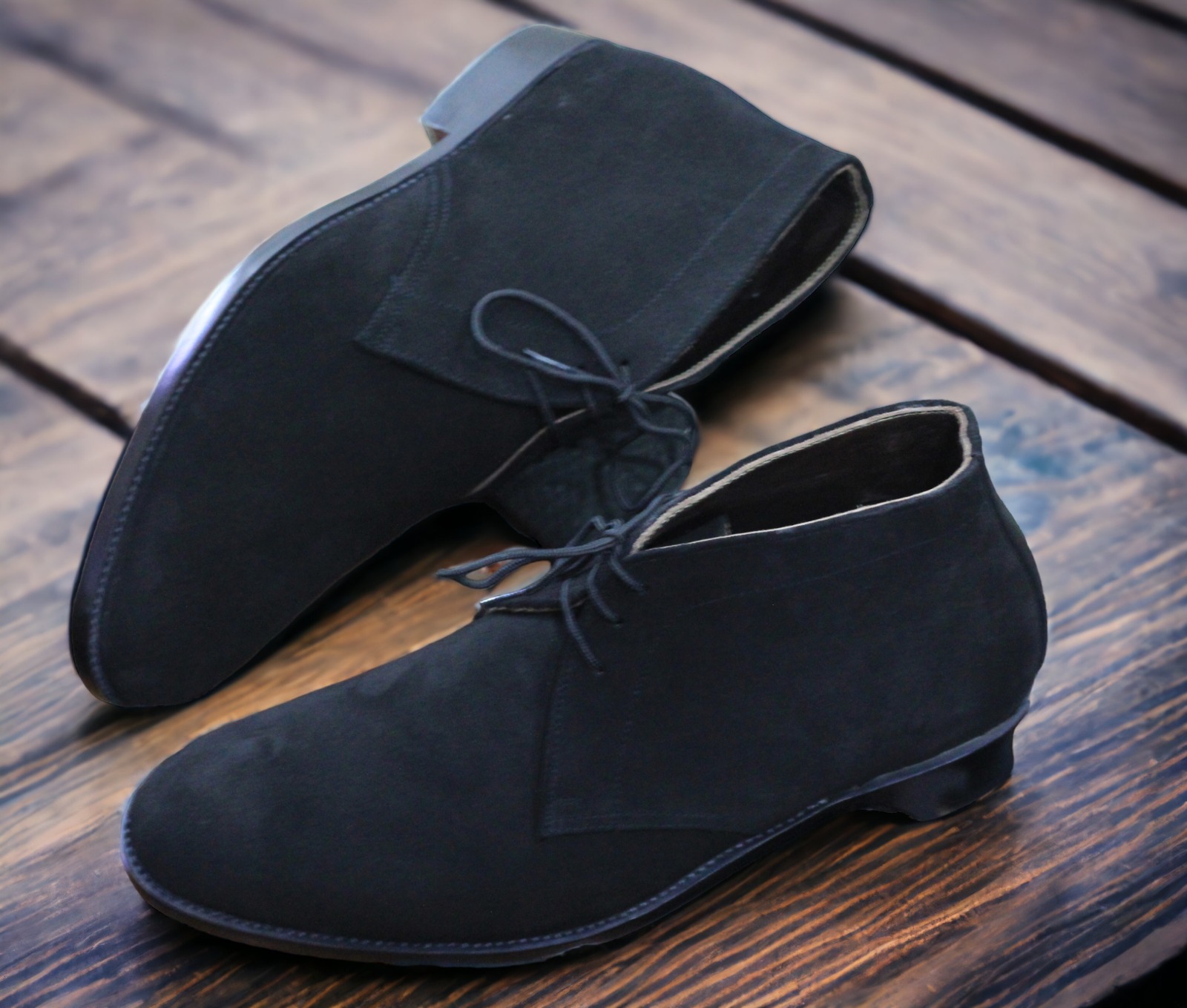 Men's Black Colour Suede Lace Up Chukka Style Handmade Boots
