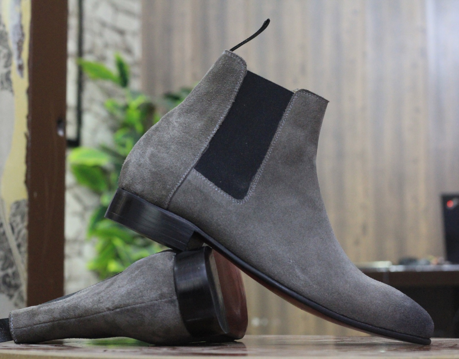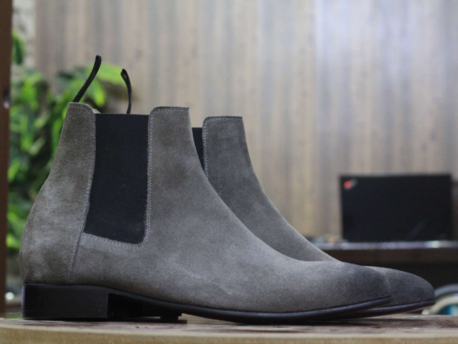 Men's Handmade Chelsea Style Grey Black Suede Boots,Men's Ankle High Formal Boots