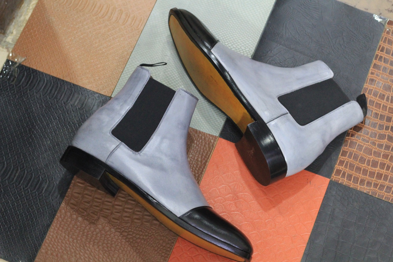 Men's Handmade Grey Black Colour New Chelsea Cap Toe Style Leather Boots