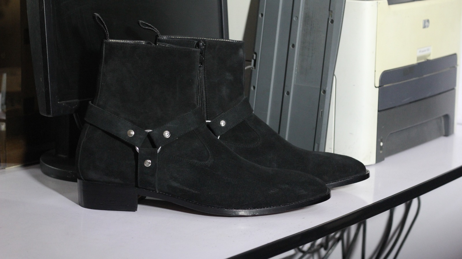 Madrid Strap Style Side Zipper Black Colour Handmade Suede Men's Boots