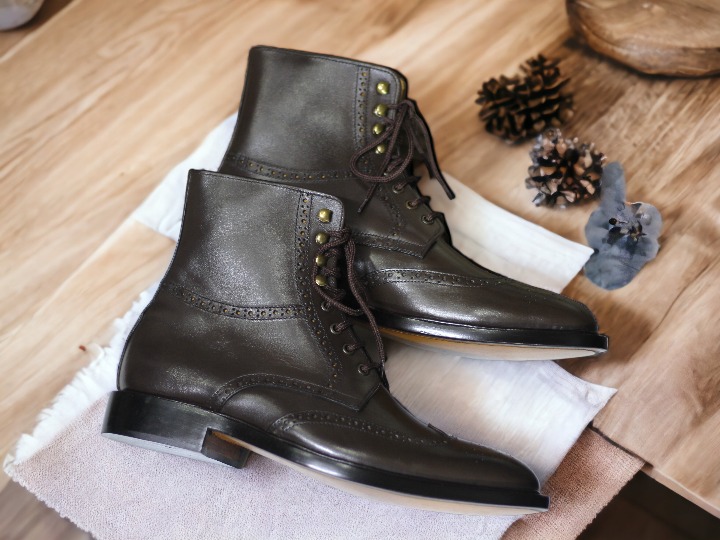 Style : Wing Tip, Brogue Toe, Lace Up Boots