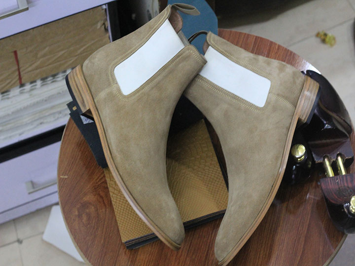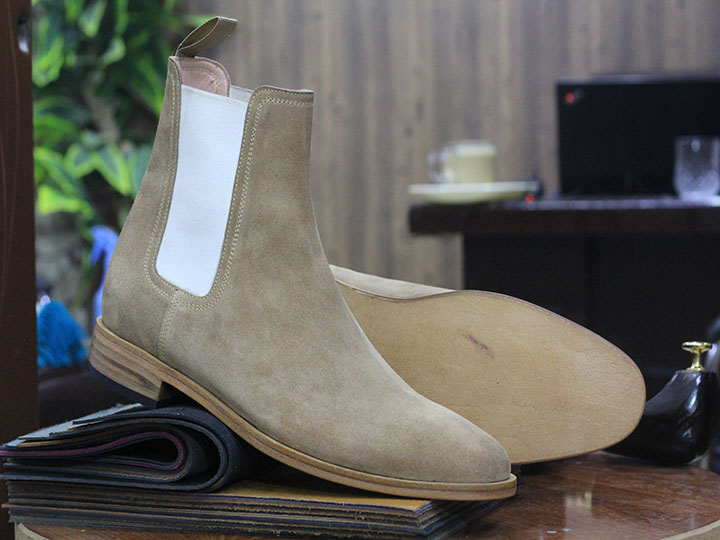Ankle High Handmade Beige Suede Chelsea Boot, Men's Boot