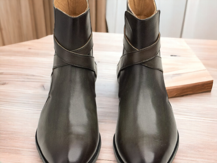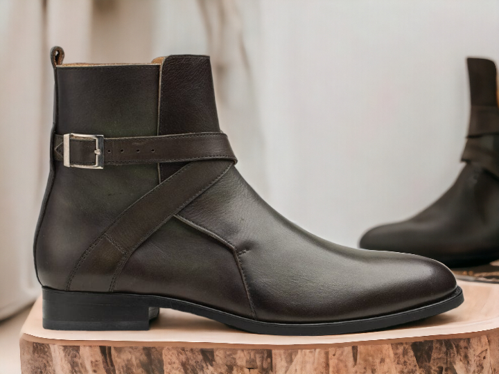 Ankle High Handmade Men's Chocolate Brown Leather Boot, Jodhpurs Boot